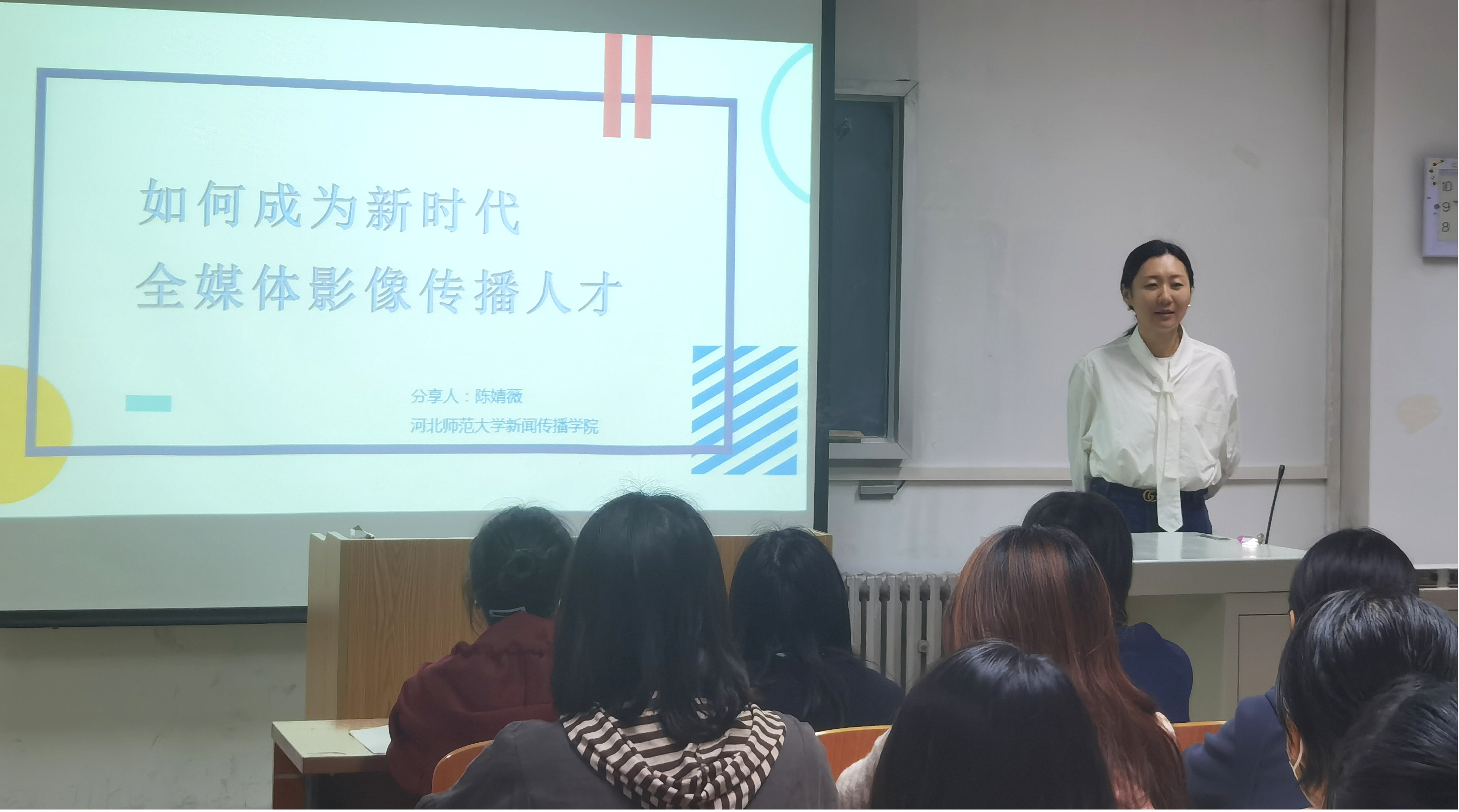 10月24日下午,河北广播电视协会播音主持专业委员会专家组成员、河北省演讲与口才学研究会常务副会长、新闻传播学院周伟红教授为2024级播音与主持艺术开展专业教育讲座。讲座现场,周老师从播音专业知识构架、基本能力、理论实践等角度,全方位剖析了专业学习的重要性。通过举例示范,使复杂的问题变得简单易懂。他强调,身为新一代传媒人既是新闻传播工作者,又是语言文字工作者。要树立正确的世界观、人生观、价值观,深入了解政治体制改革,不触碰红线,专心做好党和人民的喉舌。