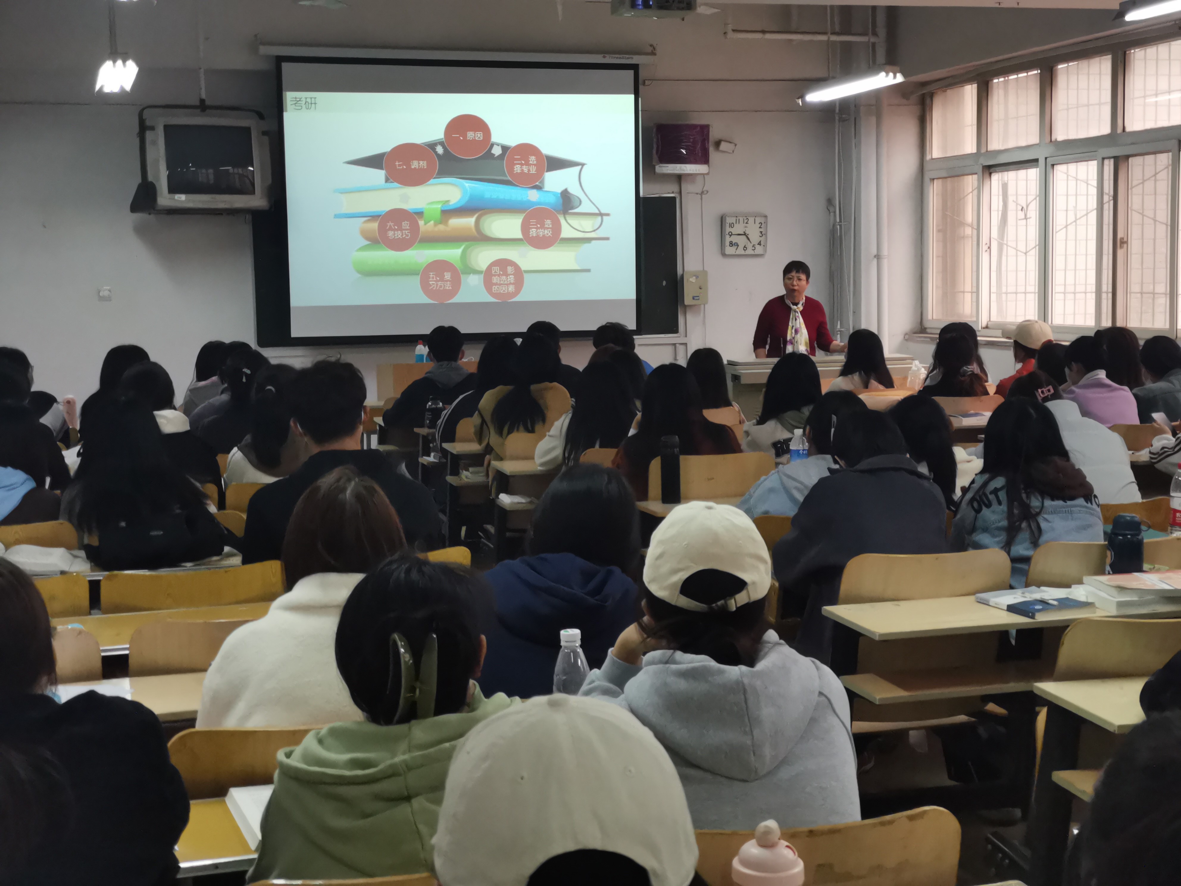 整场讲座在愉快、轻松的氛围下进行。孙老师为同学们分析了近年来不同群体学生考研原因;指导学生从学科排行、专业排行、院校分类三个角度比较与选择学校,以广告学为例介绍了各学校的优势学科招收方向;分析了影响选择的因素;以及对于复习方法和应试技巧等方面,孙老师就自身学习经验和教学经验为同学们提出了建议。