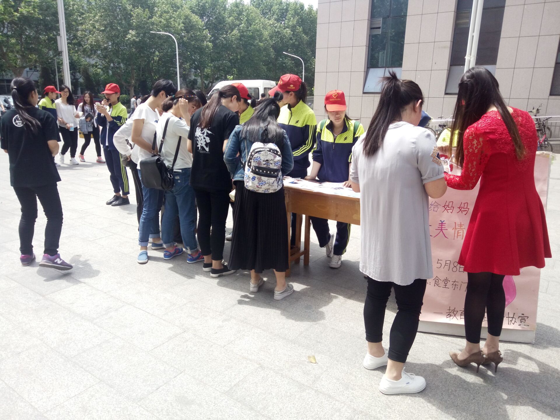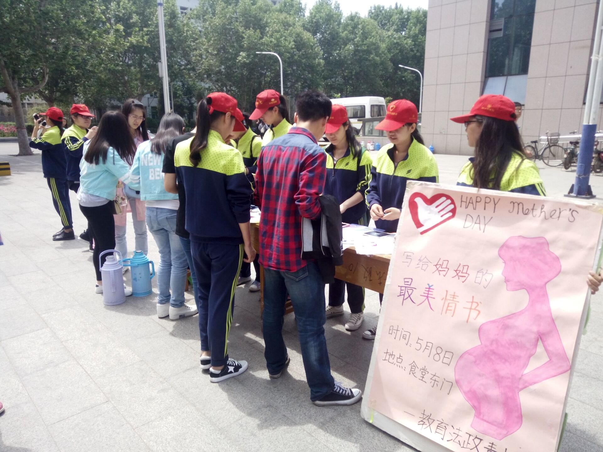 教育法政学部青协在母亲节开展“最美情书,报跪乳之恩”活动-缩小 放大+ 2016-05-095月8日,在母亲节来临之际,教育法政学部青协在北院餐厅东广场举办了以“最美情书,报跪乳之恩”为主题的感恩活动。 同学们积极踊跃的给母亲写上充满感恩的情书并且附上了和母亲的合影。虽然不能陪伴母亲过节,但是大家对母亲的祝福一直都在。志愿者将写好的情书展出并进行投票,过往的同学为自己喜欢的作品投上了宝贵的一票,让一封封情书有机会送到母亲的手中。最后,十封票数最高的作品被志愿者们放入信筒,将他们真挚感恩之情寄给最爱的母亲。