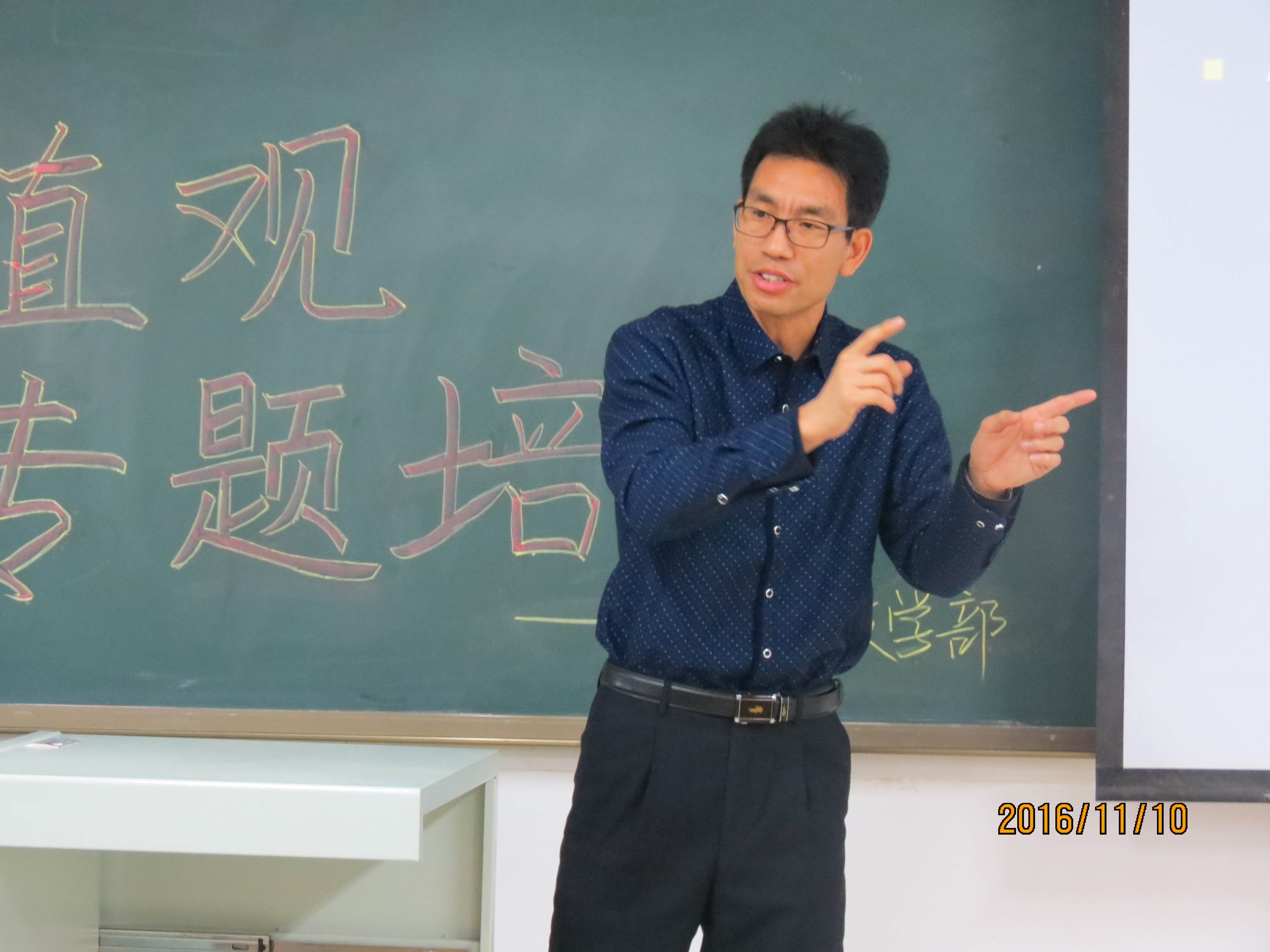 教育法政学部举办“社会主义核心价值观专题培训”讲座-缩小 放大+ 2016-11-1111月10日晚,教育法政学部在北院第六教学楼303教室举办了以“青年要自觉践行社会主义核心价值观”为题的讲座,有幸邀请到河北省委党校哲学社会学教研部副主任王英杰教授,为2015、2016级全体学生干部做了精彩详尽的讲解。 王英杰教授分别从社会主义核心价值观的概念内涵、必要原因、践行方法等方面进行了深刻剖析。他认为,在全球化浪潮冲击下的今天,当代青年面临着如何巩固国家认同感、建立社会共同体和促进意义共同体三大挑战,社会主义核心价值观的培育就显得尤为重要。他指出践行社会主义核心价值观需要利用好网络媒体的优势,掌握学生心理特点,树立身边好榜样,讲清思想大道理,发挥身边典型的示范激励作用。最后,鼓励大家到社会实践中砥砺品质,培养独立自主、自立自强的优秀人格。整场讲座中气氛诙谐幽默,现场反响强烈。