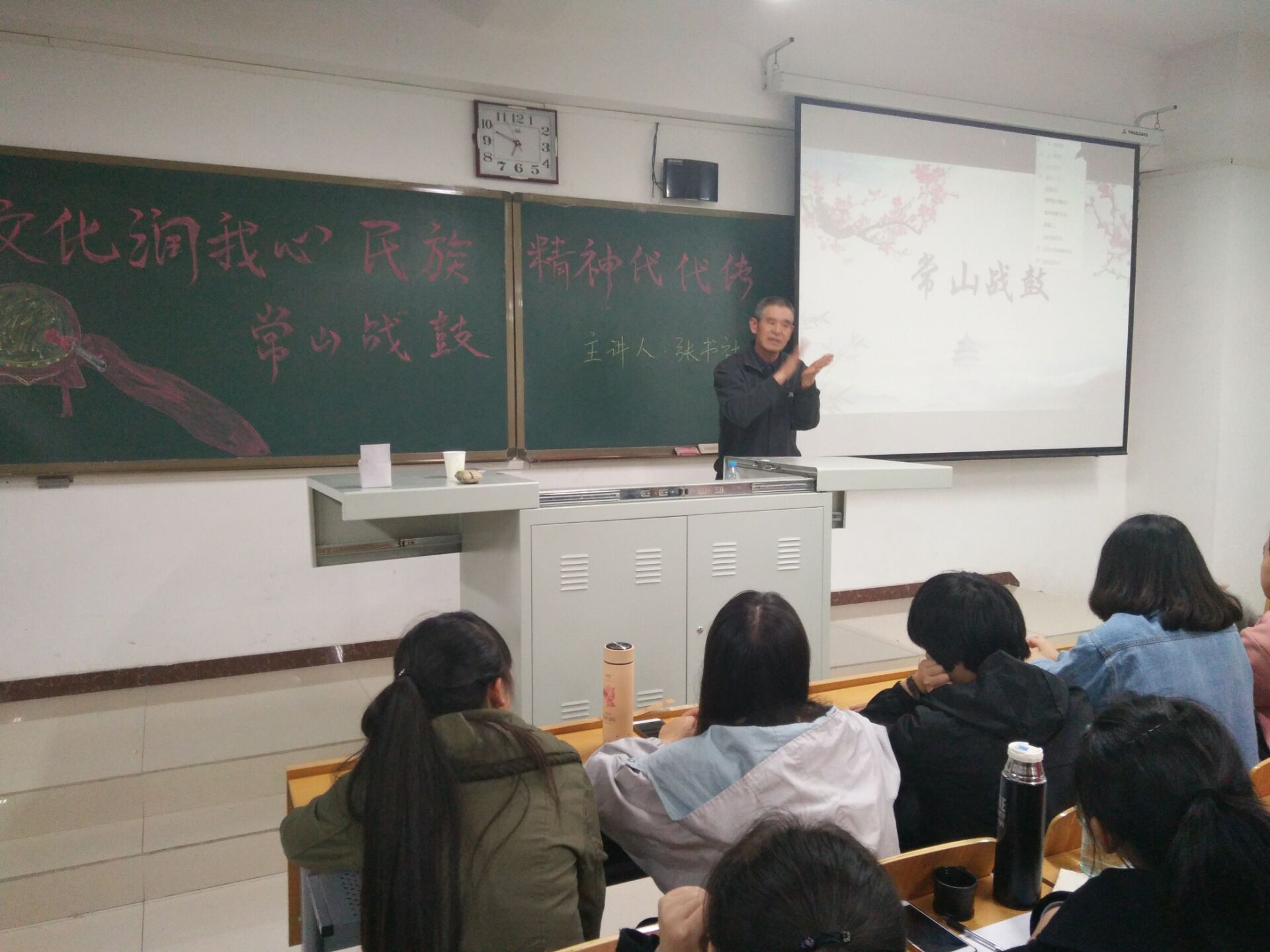 教育法政学部举办“奏出民族之魂——常山战鼓” 民俗文化讲堂-缩小 放大+ 2017-03-233月22日晚,教育法政学部在北院第六教学楼403教室继续举办“民俗文化讲堂”,本次邀请到常山战鼓的继承人张书社先生做主题为“奏出民族之魂—常山战鼓”的讲座,2016级学生参加了本次活动。 常山战鼓有着三千多年的历史,最早始于春秋时期,在汉代逐步发展起来,它是由鼓、大钹、中钹、小钹、小锣等乐器组合而成的一种民间表演形式,发源于正定,因正定县是历史上"常山郡"所在地,所以称之为"常山战鼓";常山战鼓以东杨庄村战鼓最为完整,它拥有优美的动作,时而雷霆万钧,惊天动地;时而万马奔腾,所向无敌;时而又急转直下,如雨打芭蕉;它虽然形式多样,但没有任何乐谱,完全依靠言传身授的方式流传至今,深受百姓的喜爱,成为北京奥运会开幕式表演的重要环节,现已成为省级非物质文化遗产。 讲座过程中,张书社先生还为在场的同学表演了战鼓中的打法,特别将“双击”“单击”的形式、打法、区别、各自特点做了演示,轻快鲜明的节奏、灵活多变的动作,赢得在场观众的热烈掌声。看似平常简单的常山战鼓,却蕴含着丰富多彩的民间文化,用最质朴的表现形式把几千年来中华民族的文化和精神承载至今。 本次讲座是教育法政学部民俗文化大讲堂的第二讲,活动仍然以“民俗、家乡、文化”为重要内容,把身边的具有悠久历史的民俗带到讲堂,以此提升大学生的文化素养,丰富人文知识,培养民族精神,让广大学生更好地了解民俗文化,感悟中华文明的绚丽多彩。