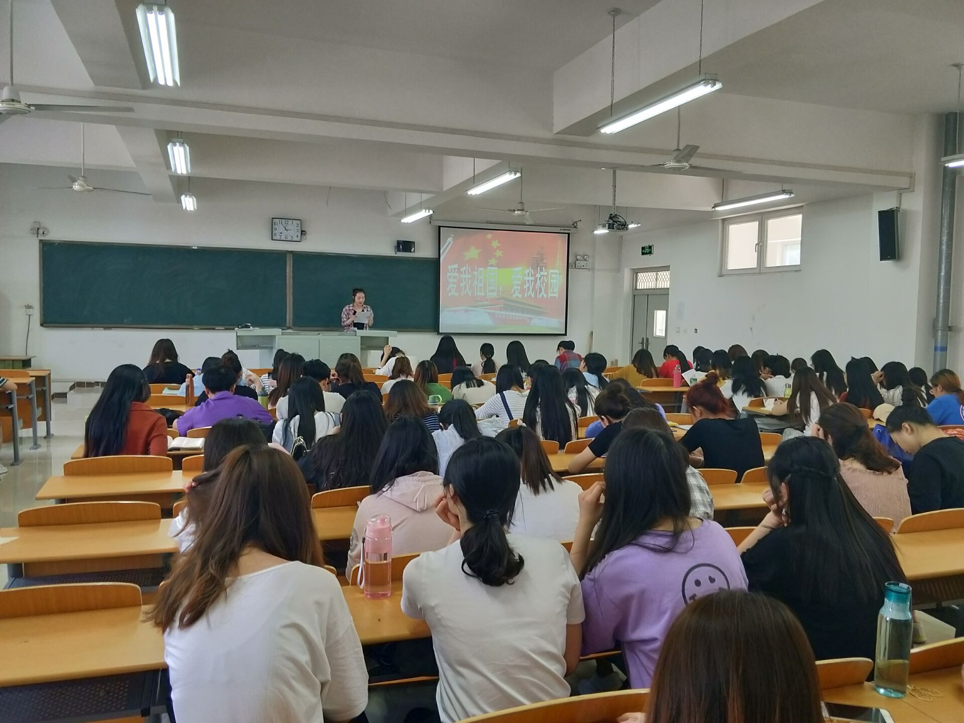 2015级法学、思政专业开展“爱国荣校 自强不息”主题班会-缩小 放大+ 2018-05-14为培养学生爱国主义信念,弘扬爱国主义情怀,5月10日下午14点30分,法政学部2015级法学一班和2015级思想政治专业一班班委会联合开展了“爱国荣校,自强不息”的主题班会。 本次会议共分为四个板块,第一板块由学生代表带领同学对近期热议的“洁洁良事件”进行深度剖析,路晓佳同学以PPT形式对“洁洁良事件”进行回顾,利用专家点评分析大学生应当如何面对该事件,启示同学要树立爱国意识,增强民族自豪感和自信心;张帅同学提出“组织上入党一生一次,思想上入党一生一世”,要将“两学一做”贯穿生活学习的方方面面;田英玲同学说到“在学习生活中,我们不仅仅要提高学习上的觉悟,更要提高思想上的觉悟”。第二板块观看影片《厉害了,我的国》,让同学们充分了解我们的国家之强大,观影结束后,同学们表示十分震撼,为祖国的繁荣昌盛而骄傲自豪,立志要更加努力学习,为实现中华民族伟大复兴的“中国梦”而努力奋斗。第三板块由辅导员郑梦阳老师作总结发言,老师提到:要成才,先成人;作为新时代的大学生,思想要紧跟时代的步伐,树立正确的思想信念,分析了习近平主席对青年大学生提出的希望:一是要爱国,忠于祖国,忠于人民。二是要励志,立鸿鹄志,做奋斗者。三是要求真,求真学问,练真本领。四是要力行,知行合一,做实干家。会议最后由学生代表冯银行宣读“爱国荣校”倡议书,全体同学进行签名活动。