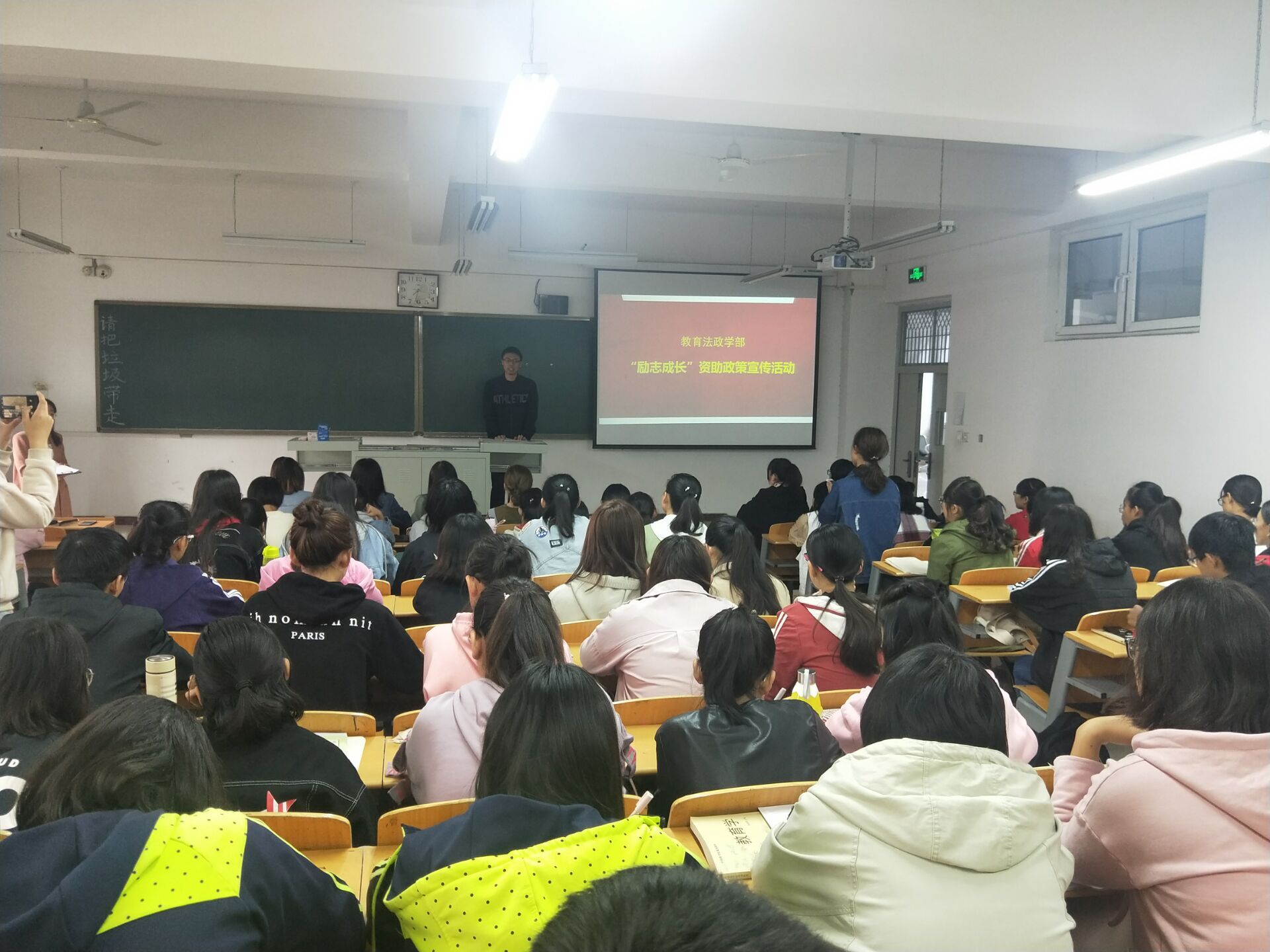 教育法政学部召开励志成长资助政策宣传活动-缩小 放大+ 2018-10-1810月18日,为积极响应“国际扶贫日”的号召,树立学生时代责任感,教育法政学部组织了励志成长资助政策宣传活动。2018级家庭经济困难学生库成员、国家励志奖学金优秀学生代表以及新生辅导员等100左右人共同参与了此项资助宣传工作。在新生辅导员贾枫老师的主持下缓缓拉开了活动的序幕,五位学生代表分别对国家的资助政策、学校的资助项目以及获得相关荣誉的条件进行了讲解。除此之外,优秀学生代表也从自己的经历出发对新生们提出了学习与活动相适应的宝贵意见。活动现场,新生们积极的记录了相关事宜和收获。活动最后,贾枫及刘佳男作为新生辅导员代表对该活动进行了总结,并提出了家庭经济困难学生在国家资助政策帮助下应该自立自强、成长成才。作为当代大学生,应心怀感恩,以更加优异的成绩回报党和政府,服务社会和人民。 立足社会、服务社会、回报社会已成为许多学校的办学理念,学校在获得长足发展的同时,热心支持公益事业,支持国家教育事业,正体现了独立学院的经营理念,体现学院热心教育、关心社会的高度责任感。通过资助贫困大学生,使学生创造经济价值的同时,也创造了良好的社会价值。 阅读次数:4740