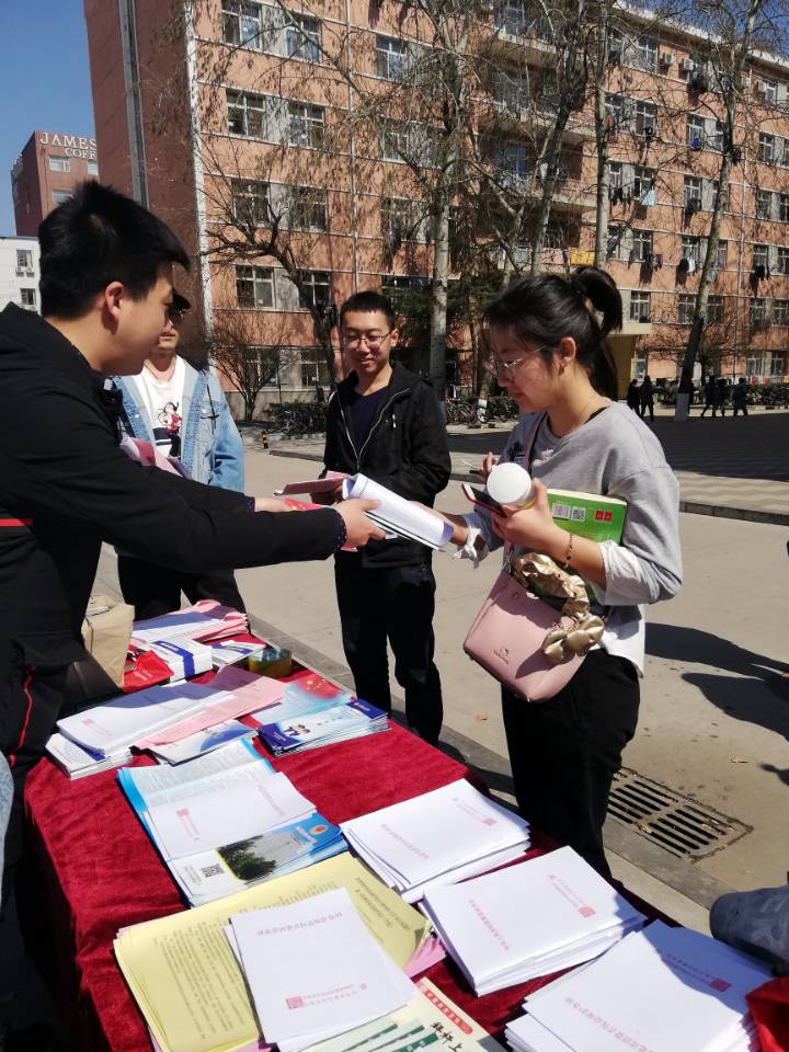 法学社开展3.15法治宣传咨询活动-缩小 放大+ 2019-03-15在“3·15”消费者权益日到来之际,法学社积极开展3.15法治宣传咨询活动。 3月13日,法学社协助石家庄市消费者协会,在万达广场参加石家庄市2019年“纪念3·15国际消费者权益日”宣传咨询服务活动,并进行普法宣传、法律咨询活动,尤其对于社会普遍关注的网络消费和老年消费进行了重点宣传,提醒消费者增强风险防范和自我保护意识。该项活动使法学专业学生将所学专业知识和实践密切结合,在服务社会中提高了自身能力。 3月14日,法学社在食堂东门进行普法宣传,向同学们普及消费安全方面的基本知识,展出介绍消费者权益保护日的相关法律法规以及贴近大学生生活的消费安全事项的海报,让同学们了解基本的维权知识,树立维权意识。 此次系列活动在促进大学生更好地了解消费者维权知识,树立维权观念的同时,也是法学专业第二课堂活动的重要组成部分,在实践中提升法学专业学生的学习兴趣,增长专业知识,为进一步完善和深化第二课堂建设奠定了基础。