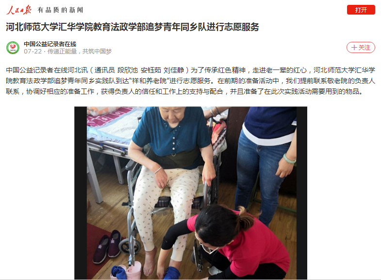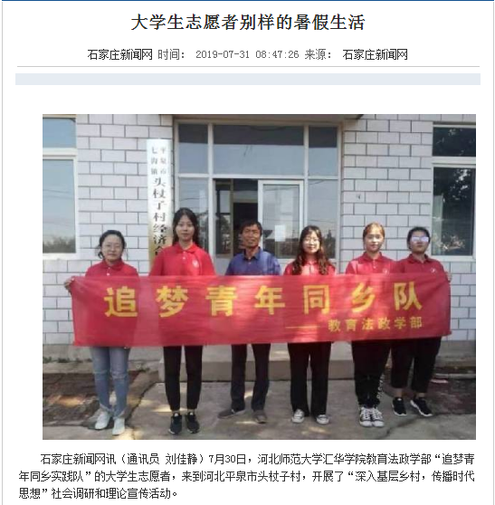 链接:1.https://wap.peopleapp.com/article/rmh5717647/rmh5717647人民日报新媒体平台人民号 2.http://www.sjznews.com/edu/2019-07/31/content_2576805.htm石家庄新闻网 3.《Beat365唯一官方网站教育法政学部追梦青年同乡队进行志愿服务》http://www.zggyjz.com/h-nd-5975.html#_np=2_611 中国公益记录者在线 4.https://feng.ifeng.com/c/7oW7CywARk7 凤凰新闻 阅读次数:5063