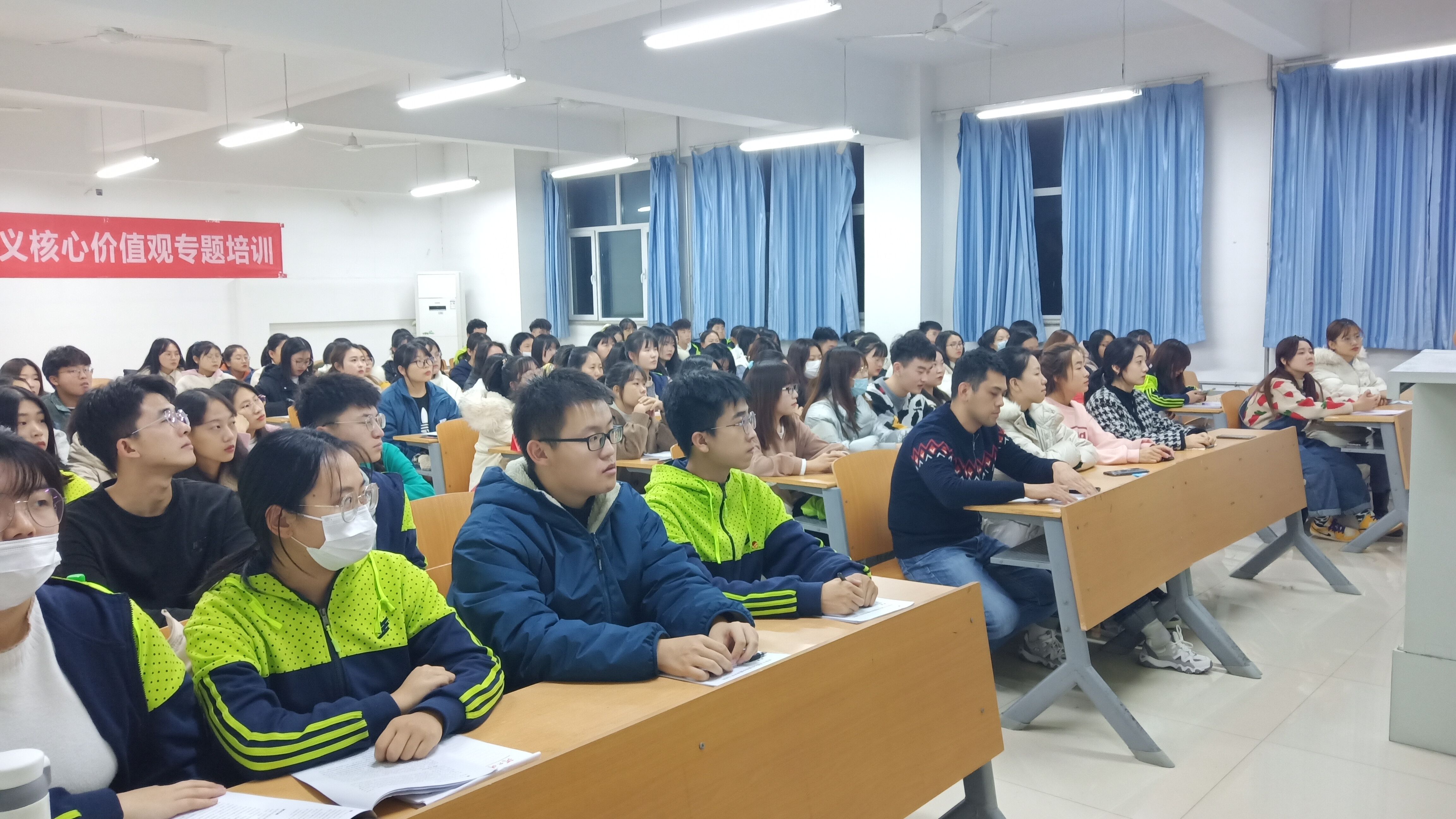 第六期社会主义核心价值观培训开班仪式顺利开展-缩小 放大+ 2020-11-2911月27日,教育法政学部在第六教学楼403教室举办第六期社会主义核心价值观主题培训班开班动员仪式,团总支书记张振伟老师参加本次活动。 活动伊始,由团总支副书记任航雨从视听课堂、专题讲座、交流分享以及学习成果汇报会四个环节介绍本次培训班的主要内容。随后团总支书记张振伟老师做开班动员讲话,指出社会主义核心价值观培训班作为教育法政学部的特色主题活动,是凝魂聚气,强基固本的基础工程。并借用陈鹤琴先生的名言鼓励同学们积极培育和践行社会主义核心价值观,厚植家国情怀,争做时代新人。