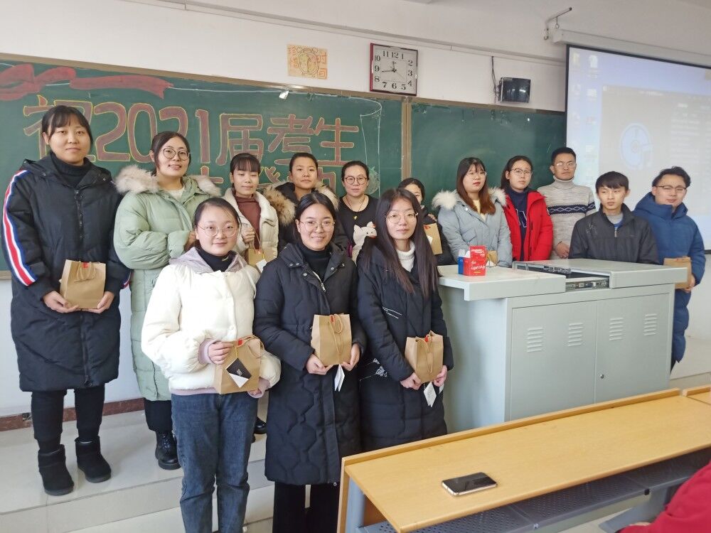 活动伊始,张振伟对本次活动做了简单介绍,希望考生们在最后10天调整好最佳状态,准备迎接人生中的大考,在考研角逐中一战成名。随后,徐鹏部长寄语祝福,以温情的话语鼓舞激励了在座的考研学子,向考生们送上了殷切的期盼与美好的祝福。参加活动的老师们分别为每一位考生送上精心准备的含有橙子、蜜桔、士力架、祝福贺卡的温暖小礼包,祝愿大家“一举成功”。老师们深情的问候,暖心的关怀,让备战考研的学子真切感受到来自学部和学院的关爱和期望,教室里不时响起热烈的掌声,为寒冷的冬天增添一份温暖。最后,张振伟总结发言,带领考研学子齐喊“加油!”,为考研学子们加油鼓劲儿!
