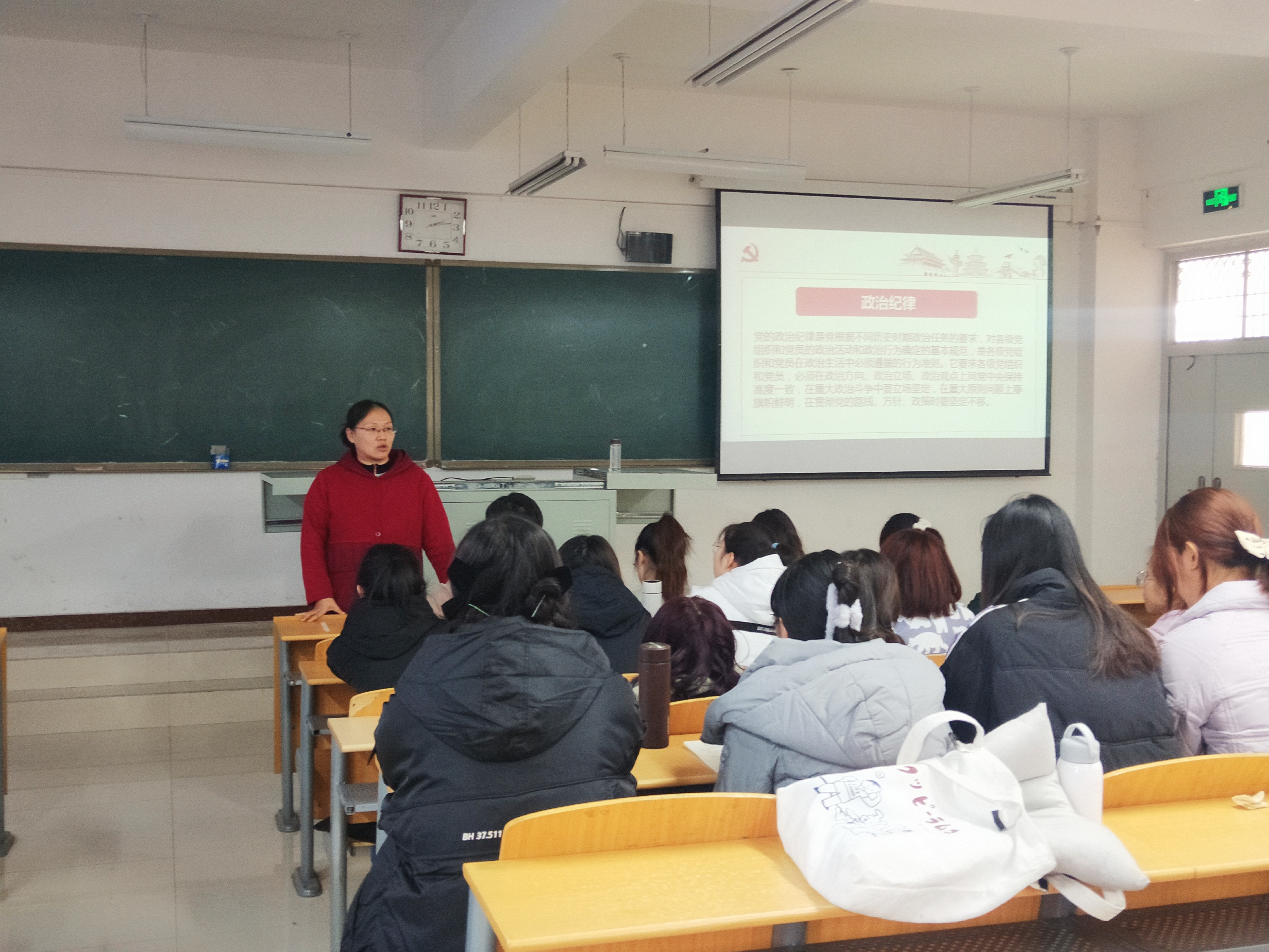 教育法政学部召开预备党员纪律教育会-缩小 放大+ 2020-12-1812月17日下午,教育法政学部党总支纪律委员王瑜在第六教学楼304教室对本学期新发展的学生党员进行纪律教育。