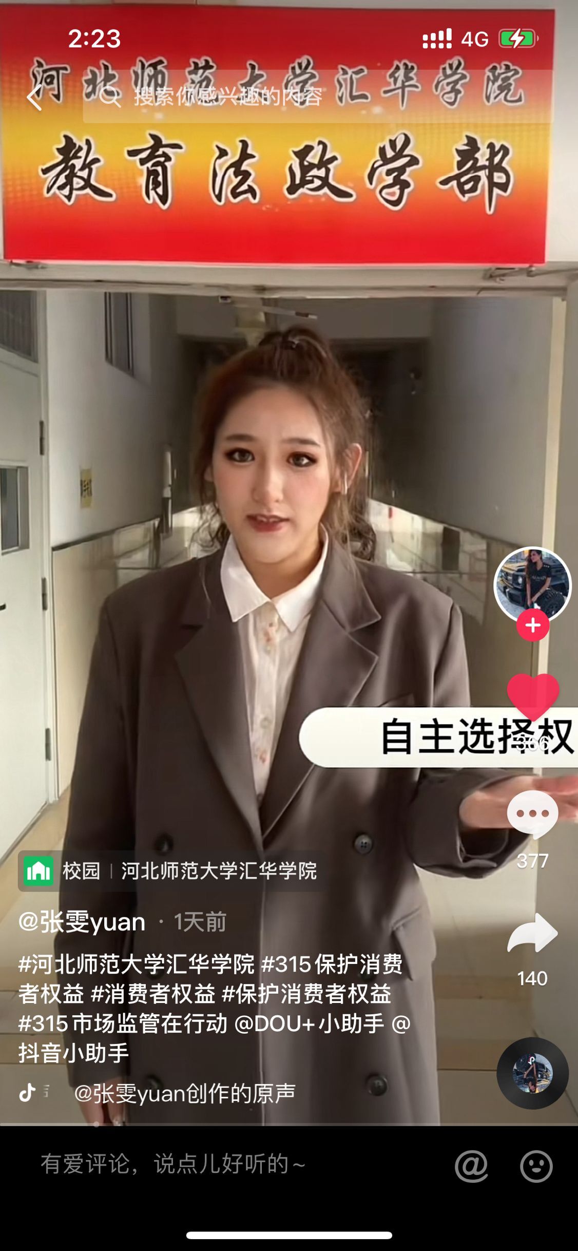 法政学部举办“捍卫消费者权益,青春伴法同行”主题法律宣传活动-缩小 放大+ 2022-03-17为进一步普及消费安全知识,提高广大在校学生的理性消费意识以及维护自身合法权益,在“3.15”消费者权益日到来之际,法政学部法学社开展了以“捍卫消费者权益,青春伴法同行”为主题的法律知识宣传活动,营造安全、放心、和谐的校园消费环境,切实保障全校师生的合法权益。 发挥专业优势,增强理论学习 法学社全体同学充分发挥专业优势,开展了有关消费者权益保护法的知识竞答。法学社全体同学踊跃参加,增强了理论知识,为今后参与法律实践打下扎实的基础。本次竞赛,专业性强、题量大、时间短,通过法学社全体同学的积极努力,取得了很好的成果。本次竞赛,共计215人参加,其中2019级法学专业纪琰、2019级法学专业和2020级法学专业杨行荣获前三名的好成绩。 与时俱进,利用网络优势 本次消费者权益保护法宣传活动在遵守疫情防控要求的前提下,充分发挥了互联网传播快、受众广的优势,创新开展了抖音宣传活动,共计发布视频10个,浏览量达13337次。其中张雯媛同学发布的视频点赞为366次,评论376次,通过在朋友圈宣传转发视频,为宣传消费者权益保护法贡献了自己一份力量。 此外,法学社同学还观看了2022年3·15晚会,聚焦“公平守正、安心消费”,关注消费领域的违法侵权现象。同学们纷纷表示,以后步入社会要灵活地运用法律知识,做个有丰富维权知识的大学生。 阅读次数:4680