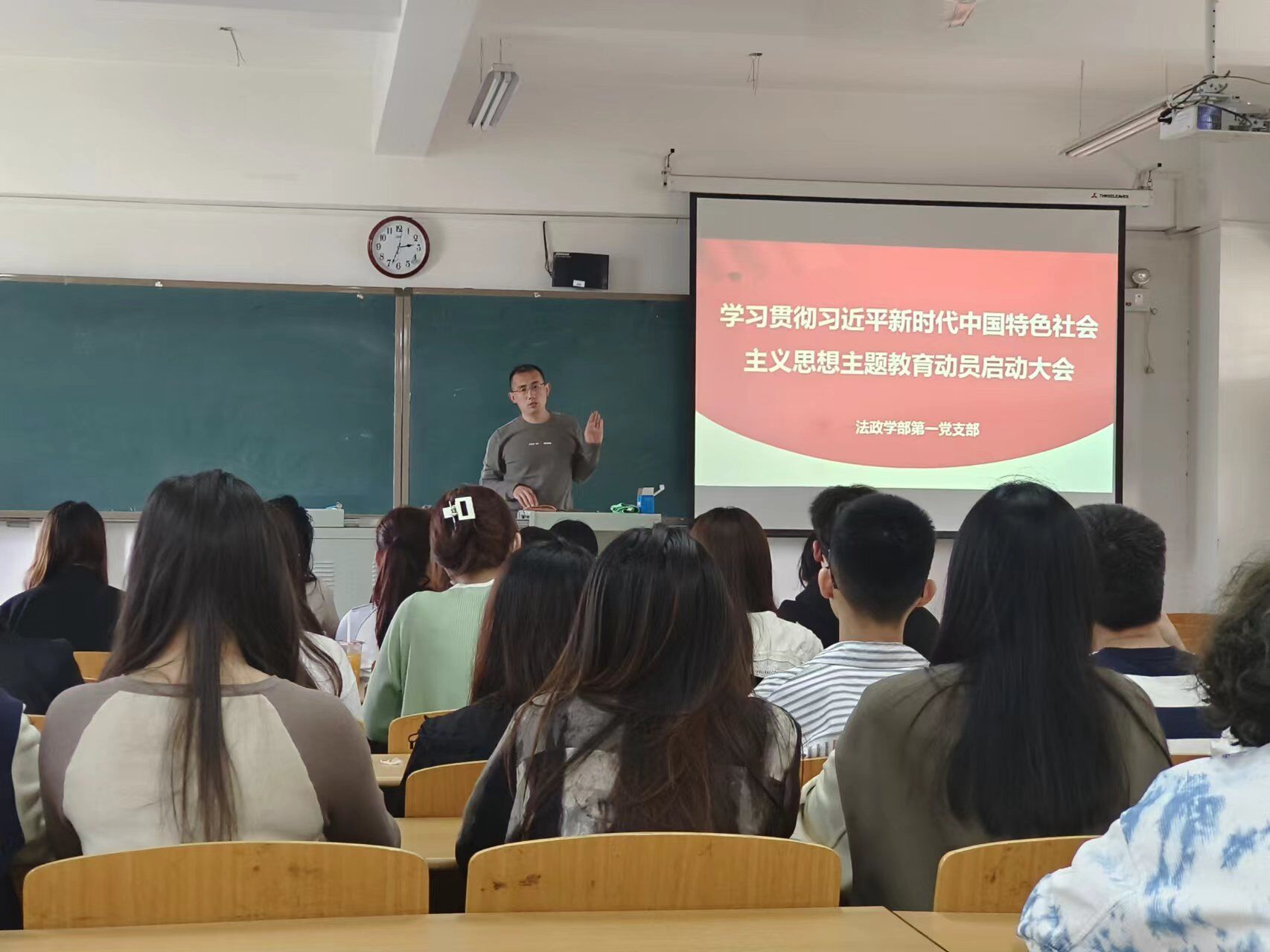 法政学部第一党支部召开学习贯彻习近平新时代中国特色社会主义思想主题教育动员启动大会-缩小 放大+ 2023-04-284月27日下午2:00法政学部第一党支部在第六教学楼505教室召开学习贯彻习近平新时代中国特色社会主义思想主题教育动员启动大会,支部书记张子君老师与42名学生党员参加了本次动员大会。 张子君老师指出,在全党深入开展学习贯彻习近平新时代中国特色社会主义思想主题教育,是党中央为全面贯彻党的二十大精神、动员全党同志为完成党的中心任务而团结奋斗所作的重大部署,是深入推进新时代党的建设新的伟大工程的重大部署,正当其时、意义重大。习近平总书记的重要讲话为全党开展主题教育提供了根本遵循,是一篇马克思主义纲领性文献。所有党员要深入学习贯彻习近平总书记重要讲话精神,从坚定捍卫“两个确立”、坚决做到“两个维护”的高度深刻把握主题教育的重大政治意义、理论意义、实践意义,不折不扣抓好贯彻落实。一是要坚持对标对表,准确把握主题教育的目标要求。要坚持不懈用习近平新时代中国特色社会主义思想凝心铸魂,始终保持共产党人的政治本色,坚持在知行合一中主动担当作为,提升能力本领建功新时代。二是要坚持系统观念,一体推进主题教育重点措施走深走实。要在理论学习上“下苦功”,在调查研究上“扑下身”,在推动发展上“见实效”,在检视整改上“动真格”,汇聚调研合力、责任合力、整改合力、发展合力。三是要坚持从严从实,高站位高质量推动主题教育落地见效。要压实工作责任,注重统筹融合,坚持求真务实,建立完善巩固深化主题教育的长效机制。 最后,张子君老师表示,法政学部第一党支部将以最坚决的态度、最有力的措施、最严实的作风贯彻落实主题教育部署安排,不断把学习贯彻习近平新时代中国特色社会主义思想引向深入。