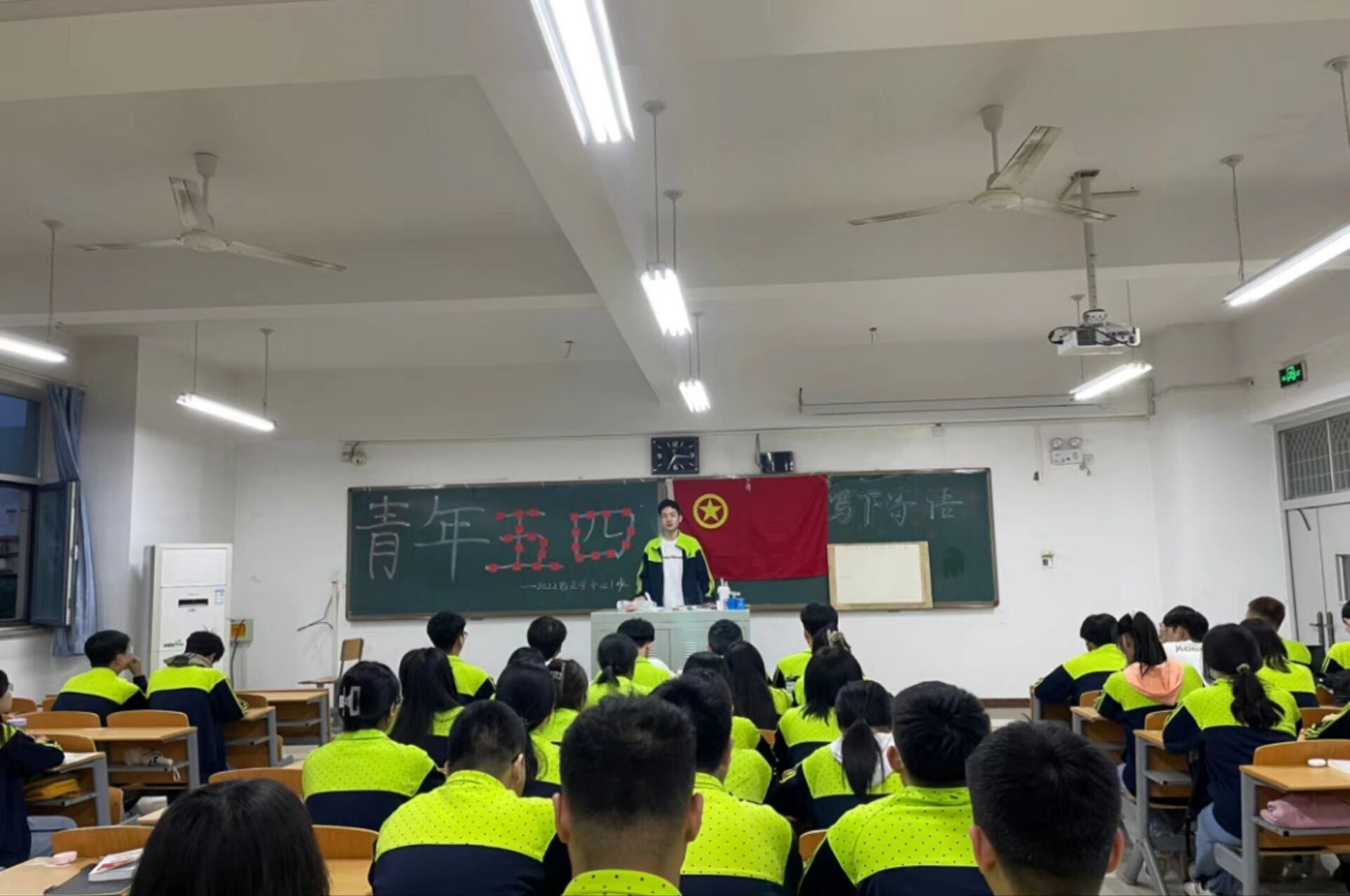 2022级法学专业开展“弘扬五四精神,汇聚榜样力量”主题班会-缩小 放大+ 2023-05-06为深入学习宣传贯彻党的二十大精神,激励和动员全班广大团员青年传承和发扬五四精神,展现新时代青年的精神风貌和责任担当,2022级法学专业1班于5月4日下午由辅导员导员贾枫组织,赵怡乐、高祥增主持开展“弘扬五四精神,汇聚榜样力量”主题班会。 第一部分,本次主题班会以思想作为引领,向同学们介绍五四青年节的由来,号召大家学习五四精神,传承五四力量。加强同学之间的联系,加深同学们之间的了解,有效增强班级凝聚力,让同学们深刻感悟百年党史,培养爱党爱国热情,加强思想建设。 第二部分,建议同学们读书交流,鼓励同学们将理论与实践进行结合,认真研读红色经典,书写读书心得。组织大家在画板和红色便利贴上分别写下对青年自我的寄语,激励同学们拼搏进取的精神。 新时代青年生逢其时、重任在肩,2022级法学专业1班团支部成员定当不忘初心,牢记使命,听党话、跟党走,始终秉持“超越自我,开创未来”的校训,发挥专业优势和自身长处,加强支部建设,让2022级法学专业1班团支部成员继续发光发热,聚青春之火,燃时代之光,肩负起新时代赋予的光荣使命!