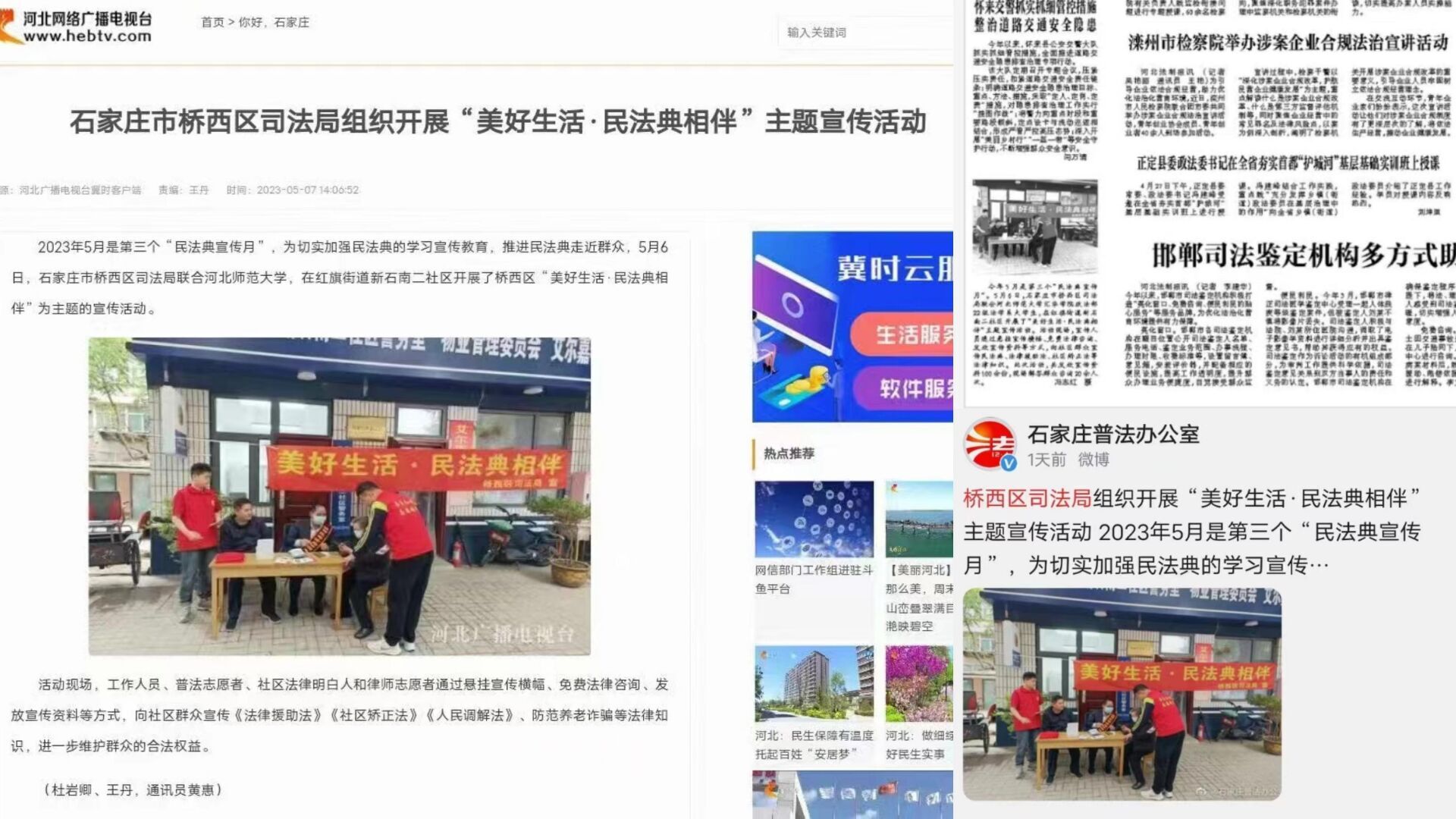 2022级法学专业开展“美好生活·民法典相伴”公益普法活动-缩小 放大+ 2023-05-15为维护社会公共利益,营造良好的社会风气,提高全民的法律意识。2022级法学1班于5月6日下午由贾枫老师组织,法学1班团支部成员参与,在Beat365唯一官方网站家属院联合桥西区司法局、红旗街道司法所、河北长征律师事务所、新石南二社区等单位联合开展普法活动。此次普法活动共发放宣传资料100余份,现场解答群众咨询20余人次,受到社区居民的一致好评,并被河北省法制报、河北省网络广播电视台、石家庄普法办、桥西区党委宣传部、桥西区政府、桥西区司法局等媒体与机关单位公众号报道。 本次活动分为三个部分。首先,通过普法志愿者们向家属院居民发放民法典宣传册的形式,向居民们讲解了关于民法典的平等原则、患者知情权、遗嘱继承权等方面的基础内容。列举了经典案例,宣传了遇到该类问题的解决方式,提高了居民拿起法律武器保护自身权益的意识。其次,由河北长征律师事务所的公益普法律师对居民所遇到的具体问题进行了解答。在公益普法律师的不断解答之下,围绕在居民心中的法律疑云逐渐被解开,使社区居民感受到了法律存在于我们身边,法律人就在我们身边。最后,志愿者们分散进入家属院各处,通过播放普法视频、分发普法纪念品等形式,增深了普法活动的普及性,使更多群众能够从本次普法活动中受益。 依法治国,普法先行。全民普法是全面依法治国的长期基础性工作,全面推进依法治国,是建设法治社会的根本遵循。本次校外普法活动为同学们更好地实现自身的社会价值提供了坚实基础,同时也激发了同学们作为法学生投身法治社会建设的决心和热情,更加深刻地认识到法律在人民日常生活中的重要地位。