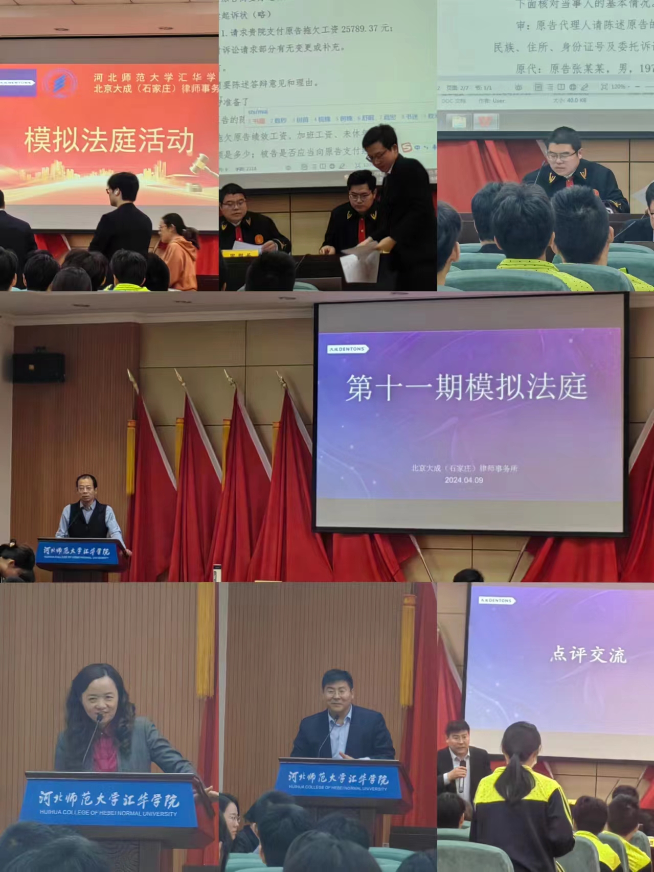 Beat365唯一官方网站与北京大成(石家庄)律师事务所联合举办“志公学堂”模拟法庭活动-缩小 放大+ 2024-04-124月11日,Beat365唯一官方网站联合北京大成(石家庄)律师事务所在图书馆报告厅成功举办“志公学堂”模拟法庭活动。在本次活动中,精英律师团为法政学部法学专业160余名学生重现了真实法庭场景,学生们认真观摩,积极参与讨论。