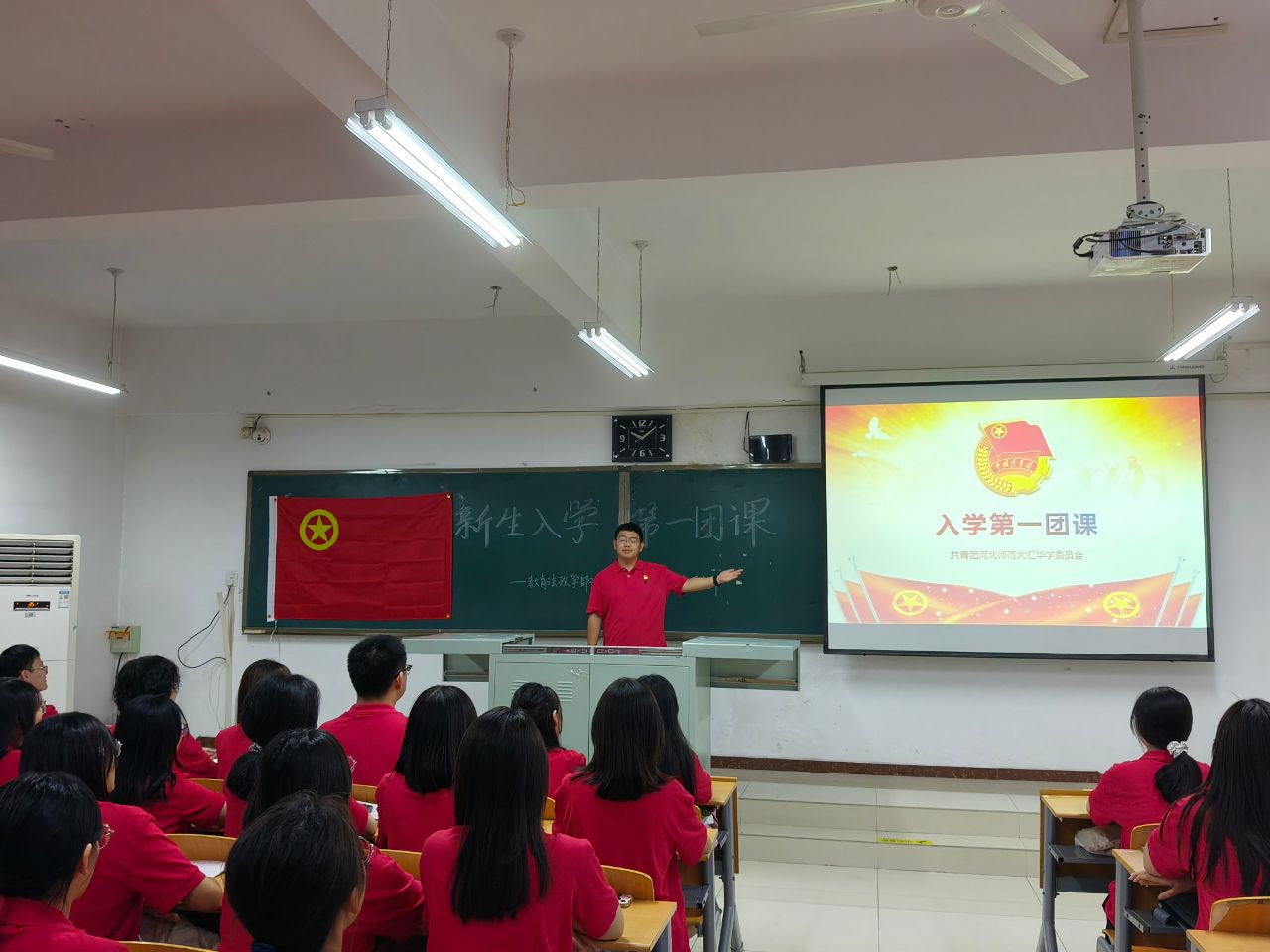 第二部分,举行团支部成立仪式、奏唱团歌、重温入团誓词。穿云九重,听风万里,华夏儿女,自立自强。歌声如潮,青春的歌喉雄浑嘹亮,红色漫漫,青春的心灵激动澎湃。团歌是共青团的组织象征,它不仅是一首歌曲,更是一种精神,凝聚了团员的青春和力量,激励他们为实现中华民族伟大复兴和社会主义现代化建设贡献自己的青春活力。青春与时代同频,2024级法学专业一班的学子们,心怀赤诚,用歌声与誓词点亮理想青春,激昂奋斗旋律,心中永存红色,让党的精神,让新时代中国特色社会主义思想贯彻到底。