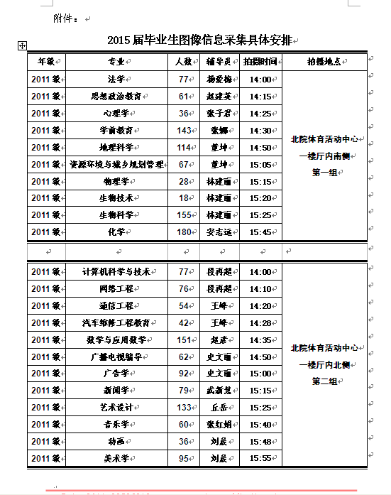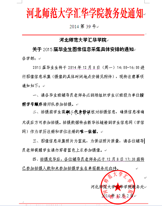 Beat365唯一官方网站关于2015届毕业生图像信息采集具体安排的通知