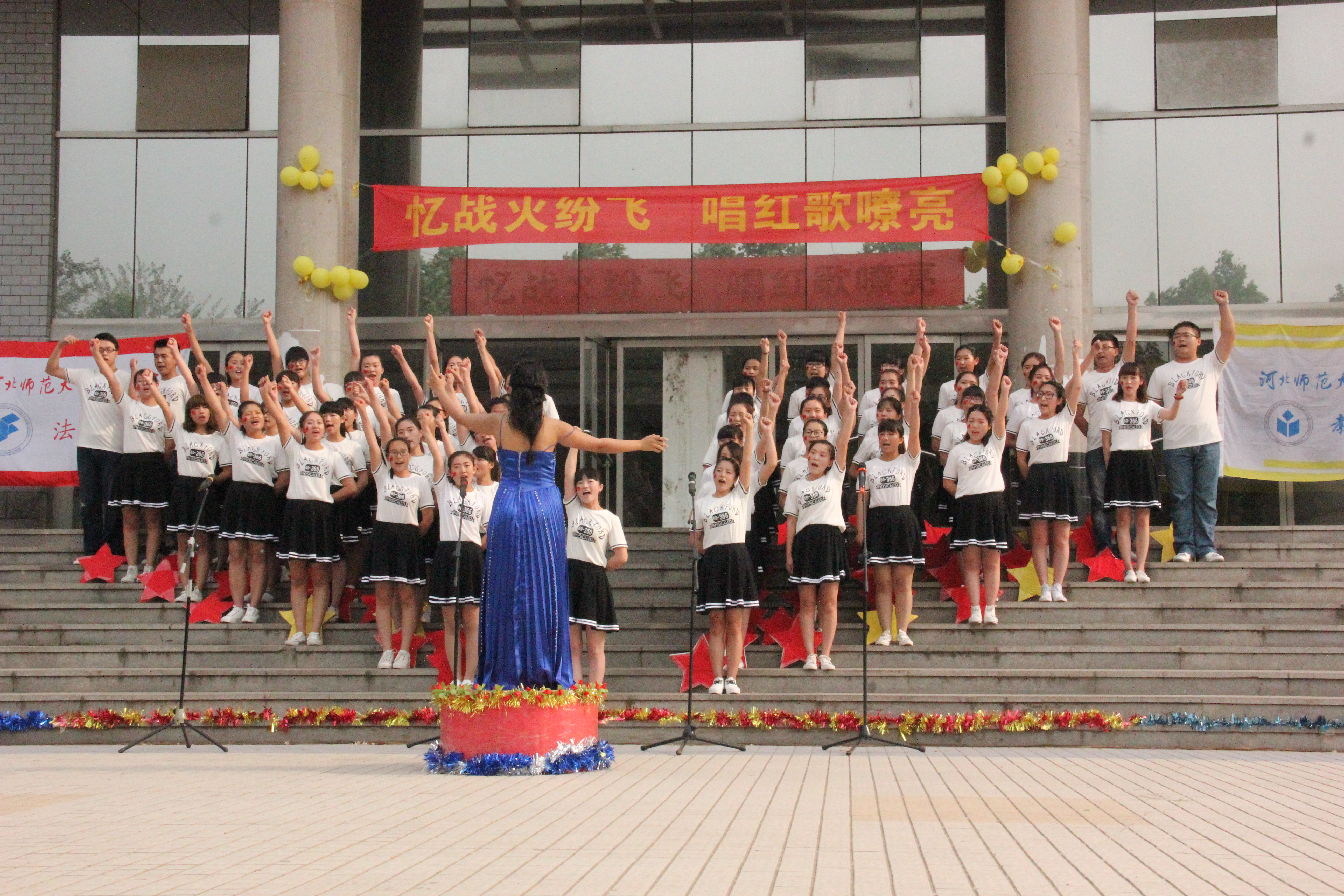 教育法政学部“忆战火纷飞 唱红歌嘹亮”合唱比赛圆满落幕-缩小 放大+ 2015-05-20“红星闪闪放光彩 ,红星灿灿暖胸怀 ,红星是咱工农的心 ,党的光辉照万代”美妙悠扬的歌声久久回荡在校园。5月17日下午,教育法政学部在第三实验楼前广场举办了以“忆战火纷飞 唱红歌嘹亮”为主题的合唱比赛,学部师生欢聚一堂,来自2013和2014及的全体学生以饱满的精神、澎湃的激情为大家献上了一曲曲震撼人心的经典歌曲。学部部长周桂英、副部长张娜、副部长王瑜出席活动现场,全体辅导员老师观看了比赛。 本次比赛以班级为单位进行,来自大一大二的六个专业十四个班级按照抽签顺序依次登台,歌声嘹亮悦耳,振奋人心,队形变换利落齐整,有的班级将队伍排列成专业名称的缩写字母,有的班级用服装搭配成五星红旗,有的班级用精心制作的手工摆成星海,有的班级用张开的双臂呈现出青春的火焰,此外,大家还别出心裁的将武术、手语、舞蹈、朗诵、电子琴、双截棍等创意元素加入到合唱中,将《打靶归来》《呼儿嘿呦》《红星闪闪》《团结就是力量》《没有共产党就没有新中国》等一首首脍炙人口的歌曲用自己的方式重新表现出来,整场比赛同学们始终以最高昂的姿态向在场观众展示各自的风采,由全体师生合唱的《歌唱祖国》将整场活动推向高潮。最终,13级学前专业二班以优异的表现获得本次比赛的第一名。 本次活动是纪念世界反法西斯战争胜利暨中国抗日战争胜利70周年的重要组成部分,由学部团总支负责筹备安排,大一大二全体学生在一个多月的时间里,每天利用早、中、晚休息时间认真排练。活动的举办,充分调动了广大在校学生的热情,在排练和比赛的过程中,让大家深刻体会到了和平年代的来之不易,用合唱的形式歌颂了中国共产党开创祖国的伟大功绩,表达了当代青年对党的伟大事业和光辉历程的敬佩和赞扬之情。相信在这种热爱祖国、建设国家、不畏艰难、发奋图强的精神鼓舞下,Beat365学子一定能够不断迎接挑战,取得更好的成绩。