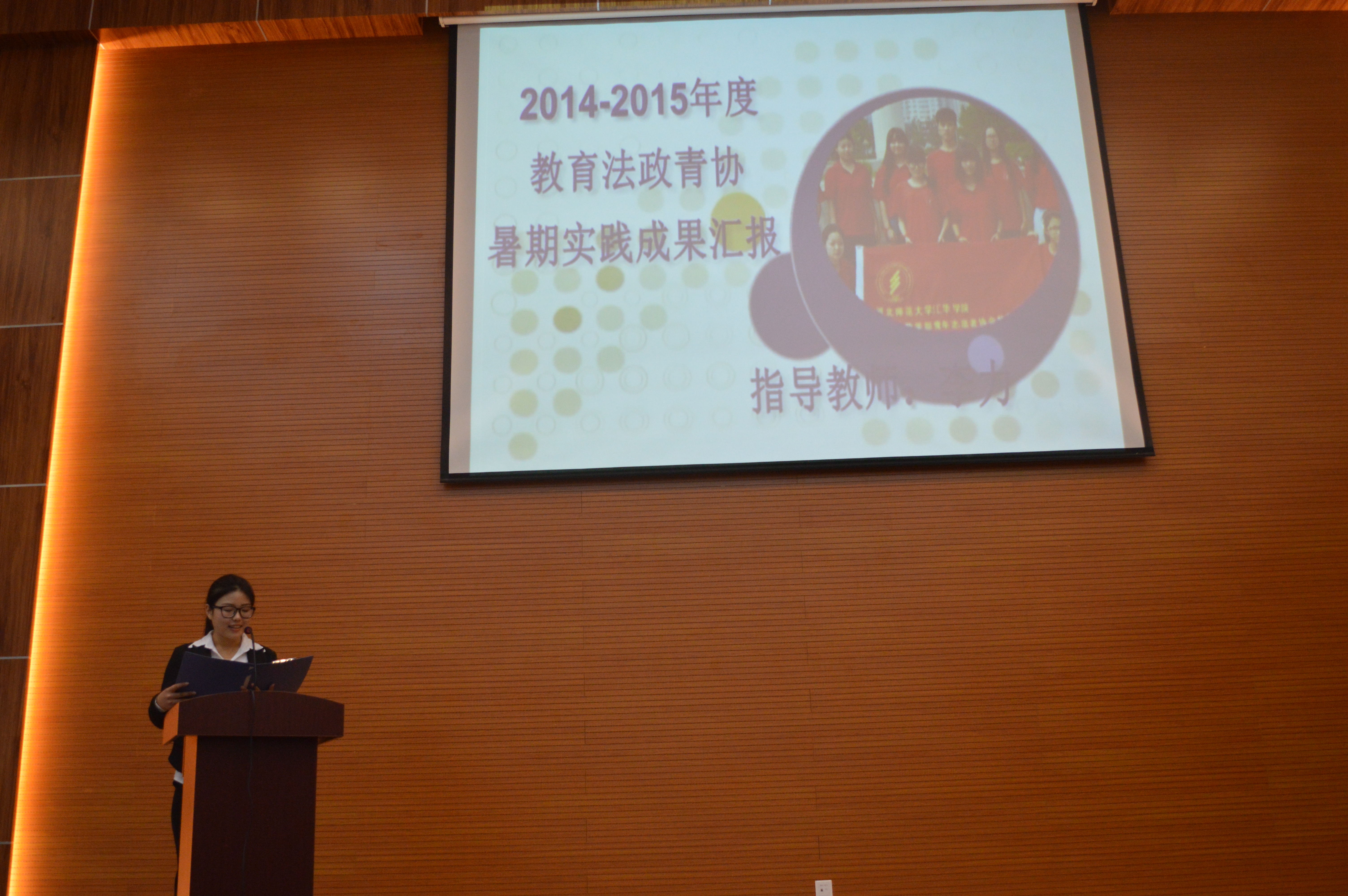 “在奉献的路上,不是路人,是归人” ——教育法政学部2015年暑期社会实践活动圆满落幕-缩小 放大+ 2015-10-12为鼓励引导青年大学生了解国情,关注民生,奉献社会, 10月11日,教育法政学部在北院大学生活动中心举办“青春实践行点赞中国梦”暑期社会实践成果汇报展,至此,2015年暑期社会实践工作圆满结束。部长周桂英、副部长张娜出席了本次活动,各年级辅导员老师和2015级全体学生参加了本次活动。 本次暑期社会实践成果汇报由学部评选的十支优秀团队组成,包括2支集中队,7支同乡队和1名分散实践同学。特殊教育专业“有爱无碍”、“聚爱成荫”两支集中队走进自闭症康复训练学校、残联服务中心等地,为特殊人群送去爱心和帮助;青协暑期社会实践队奔赴保定,重走革命之路,感受先烈的峥嵘岁月,让革命的火炬世代相传;法学专业“法义青春”同乡队来到承德当地的敬老院,为那里的老人开展普法宣传,解答他们的法律困惑,用实际行动履行了法律人的职责;小学教育“汇爱燕赵”实践队奔赴多个地市为当地的留守儿童带去了问候和关怀。心理学专业的王彩凤同学,以个人实践的形式来到山区,为贫困地区的孩子们带去了知识,送出了温暖。汇报过程中,实践队员们用真切的眼神,动情的话语,将自己在实践过程中的所见所闻和所感为在场师生进行介绍,一个个动人的故事,一段段感人的经历,一张张充满真情的照片,一封封发自内心的感谢信,绘成了教育法政学子奉献社会的美好画卷。现场观众也无不为之所动,阵阵的掌声、感动的泪水是对所有实践队员最好的认可和奖励。 “纸上谈来终觉浅,绝知此事要躬行”,暑期社会实践工作一直是学部全体学生践行社会主义核心价值观,发扬“勤奋、求实、进取、奉献”优良校风、培养“志存高远、勇于探索、笃学笃行”优秀青年的重要环节,是广大学生深入基层、联系群众、了解社会的重要途径,也是实现大学服务社会职能的重要平台。为保证本次实践活动顺利开展,学部积极做好动员培训工作,制定具体实施方案,学生踊跃组队,积极参与,共组成2个集中队,84个同乡队,91个个人实践队,奔赴到11个城市88个县区开展了围绕纪念反法西斯战争胜利七十周年、关爱特殊人群、关怀留守儿童以及为生态文明建设做贡献等主题的志愿活动,共收到感谢信70余封、锦旗2面、荣誉奖状6张,石家庄文明网、衡水好人网、高阳电视台、牛城晚报等共计62家媒体对活动进行报道。此次暑期实践在实践人数、方案策划、宣传报道等方面均有突破和创新,除微博、qq空间以外,公共微信平台这个新媒体的运用,让社会实践的宣传模式和学生在实践过程中的交互体验都有新的提高。今后,学部会继续围绕“立德、树人”这个核心,结合专业开展适合大学生成长成才的实践活动,让学生在奉献中学会感恩,在行动中学会回报。