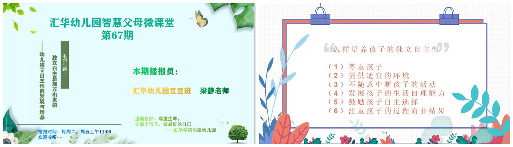 第67期微课,由豆豆班梁静老师和大家分享“幼儿独立自主性的发展与培养”