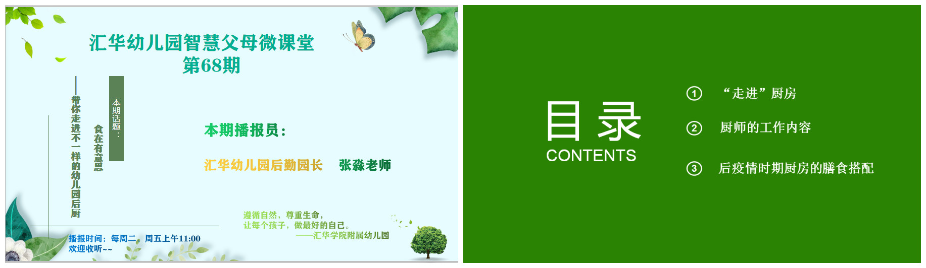 第68期微课,后勤园长张淼老师和大家分享的主题是“食在有意思——带你走进不一样的幼儿园后厨”