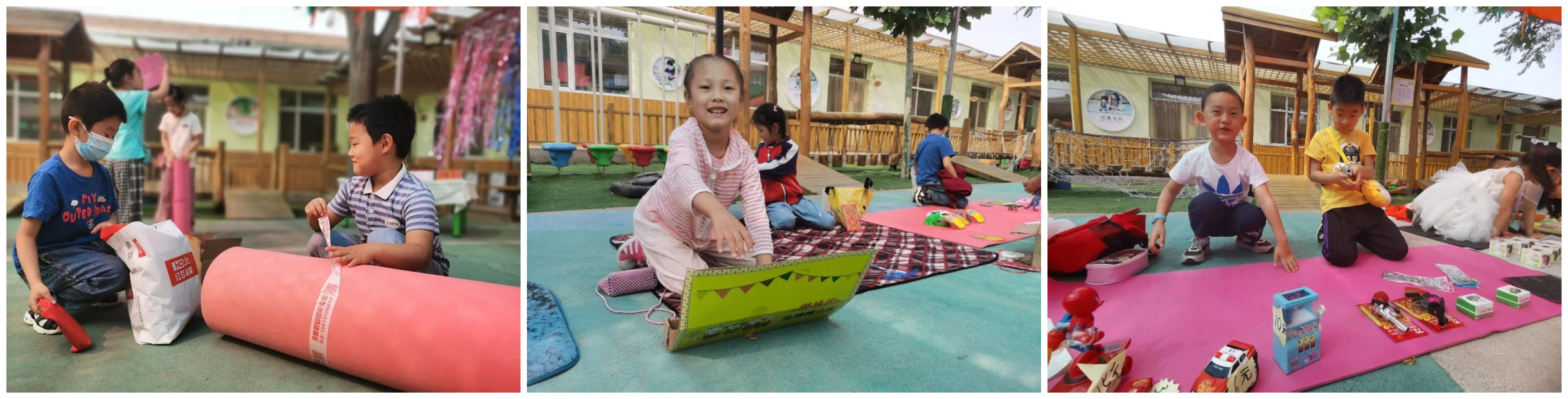 幼儿园为孩子们创造了“跳蚤市场”的平台,孩子们带来家中闲置的玩具、图书,让孩子发挥自己的才能,自主买卖、交换,家长协助孩子设立了标语、摊位名、制作站立广告牌等,把自己的摊位布置的与众不同。