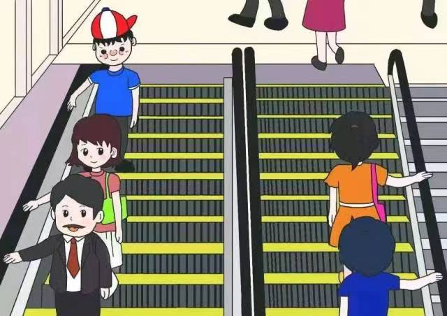 4.乘坐扶梯时,让孩子保持在自己的视线范围内,并且紧紧拉住他。