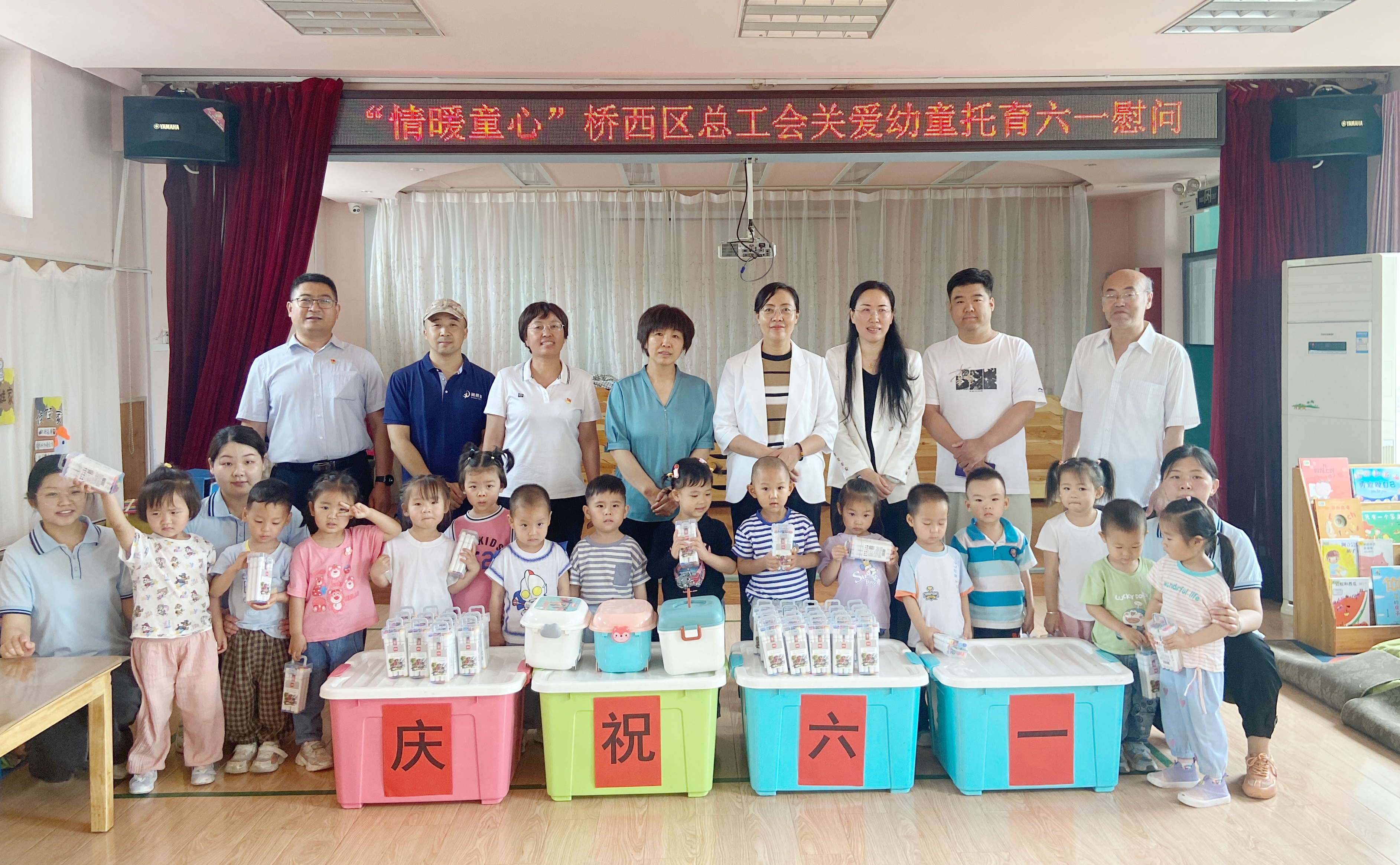 在六一儿童节来临之际,5月29日上午,石家庄市桥西区人大常委会副主任、区总工会主席蔡玉霞,桥西区总工会党组成员、副主席张翼,桥西区总工会党组成员、一级主任科员于会平等一行6人到我园慰问托班幼儿。Beat365唯一官方网站院务委员、幼儿园理事长杨继清,Beat365唯一官方网站工会委员、幼儿园理事姜文杰,幼儿园园长朱金玲,副园长闫亚玲、张丹等陪同有关活动。