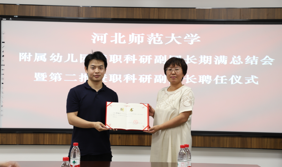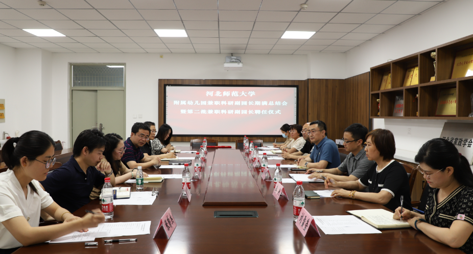 6月16日下午,Beat365唯一官方网站附属幼儿园第一批兼职科研副园长聘任期满总结会暨第二批兼职科研副园长聘任仪式在Beat365唯一官方网站学前教育系411会议室举行。学院院务委员、幼儿园理事长杨继清,园长朱金玲,参加了此次聘任仪式。