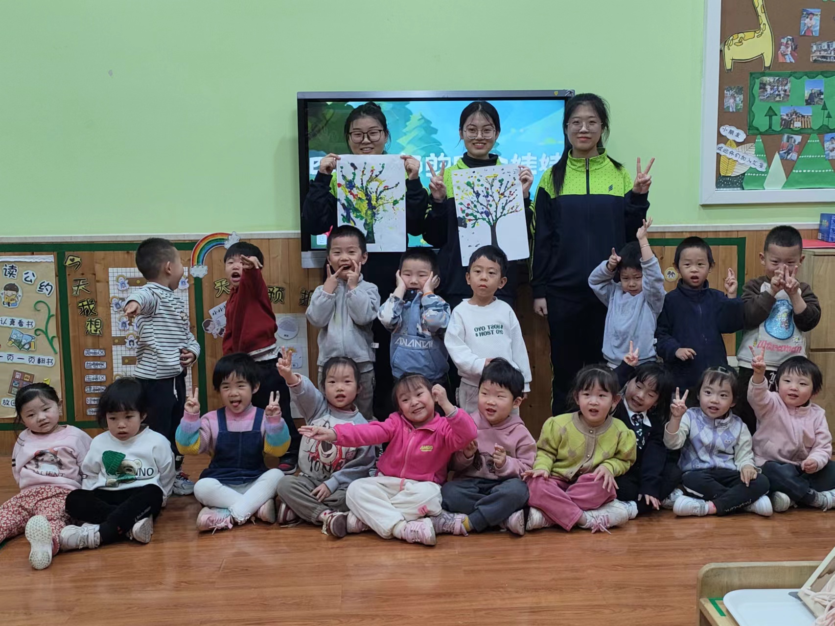 2024年3月12日,2022级学前教育专业一班4名共青团员以植树节为契机来到我园,向小朋友们宣传保护树木的理念,深化环保意识,通过制作点画的方式给大树装饰颜色,用特殊的方式和小朋友们一起守护绿色,迎接春天。