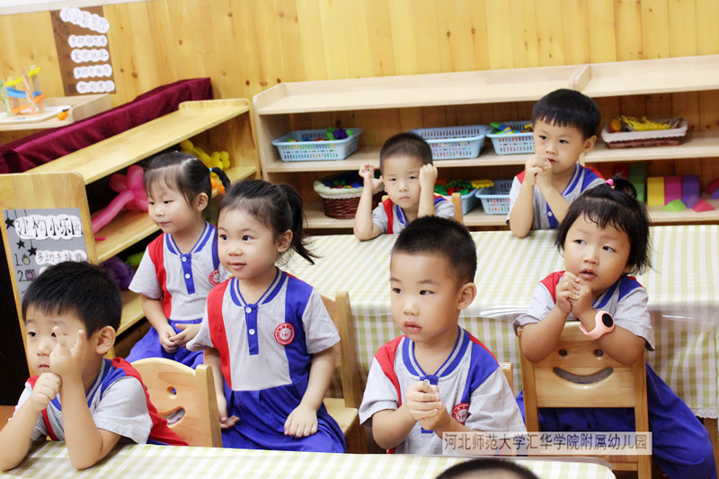 最让孩子们激动的是——我们升班啦!我们长大了,给新入园的弟弟妹妹们做好榜样!看——我们坐的多整齐。班里有新的小朋友们加入,我们手拉手、互相拥抱,欢迎他们的加入!