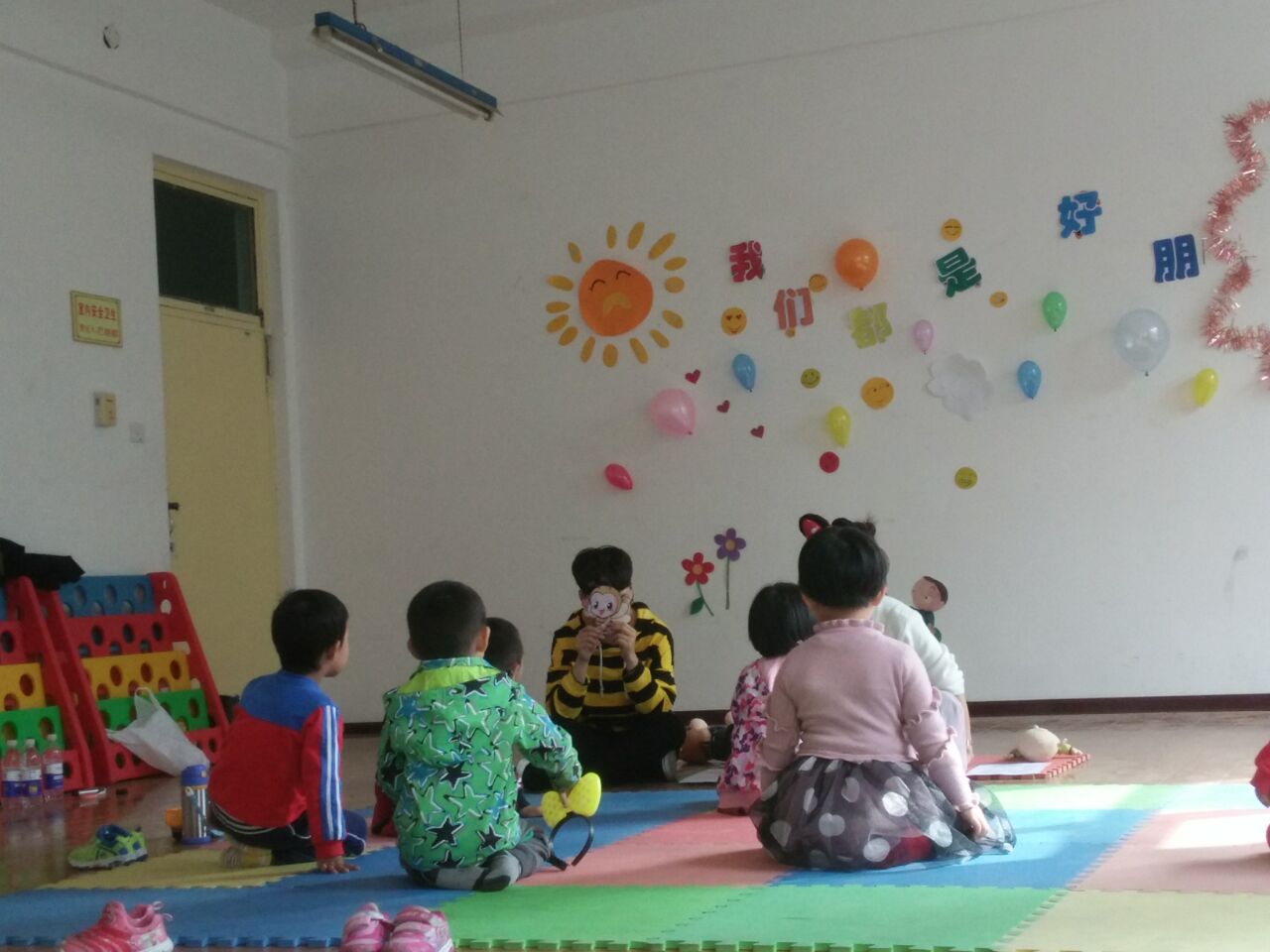 语言表演课上,孩子们和老师配合默契,课堂氛围轻松活泼。第一次课以“我们都是好朋友”为主题,老师和孩子们都进行自我介绍,老师通过木偶朋友“小光头”来带动孩子们的积极性,加强彼此熟悉。之后学习了小蜜蜂,小花猫,小白兔和小象弟弟等小动物的童谣,通过朗读、诵唱童谣,让孩子感受明快的节奏、真挚的情感,激起对童谣的兴趣和对动物的热爱。进一步帮助孩子积累语言,并逐步提高运用语言的能力。随后小朋友们一起模仿小动物,活泼生动,十分有趣。最后,老师带领小朋友们一起做游戏,过山洞和老狼来了,通过这两个游戏,孩子们得到彻底的放松,教室里充满了欢声笑语。课程的八次课将运用趣味儿歌、简单的绕口令、简短的寓言、故事,手指操等多动方式,在肢体动作的模仿表演与夸张的语言表演中,提升孩子的学习兴趣与热情,给予孩子正确规范的语言表演环境与艺术审美熏陶。