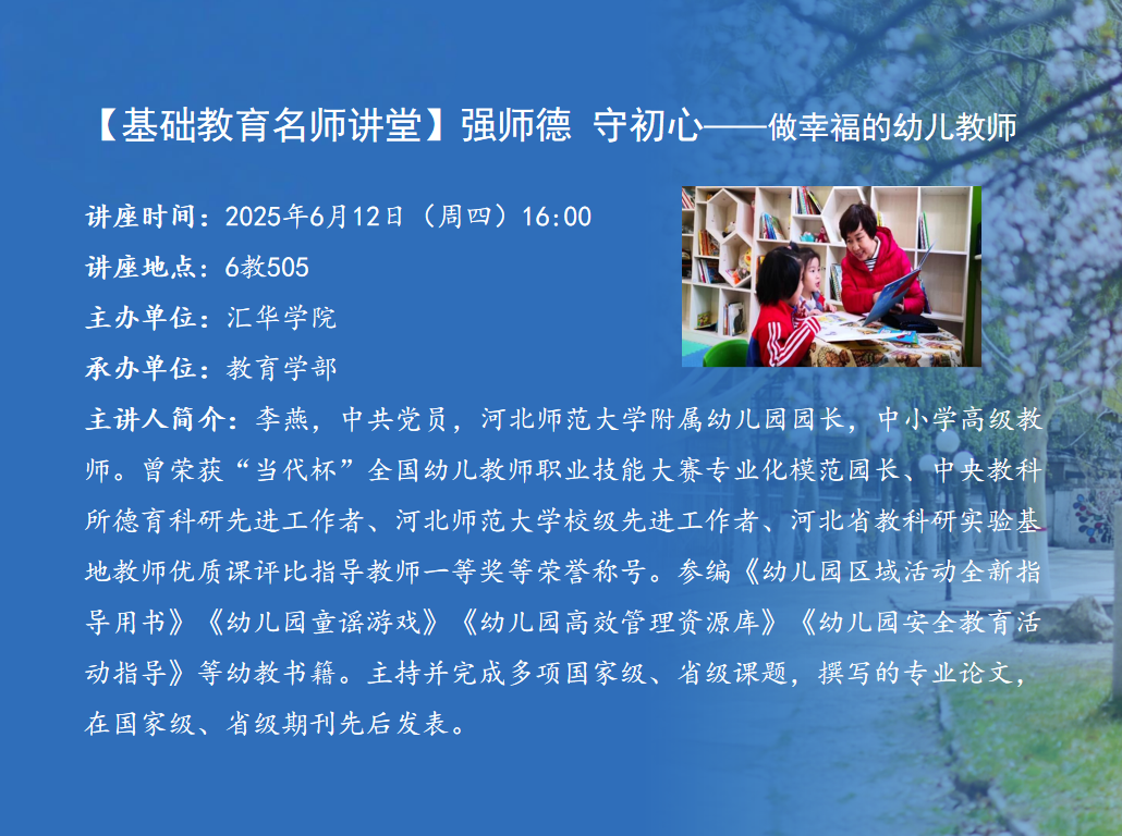 讲座题目:强师德,守初心 ——做幸福的幼儿教师