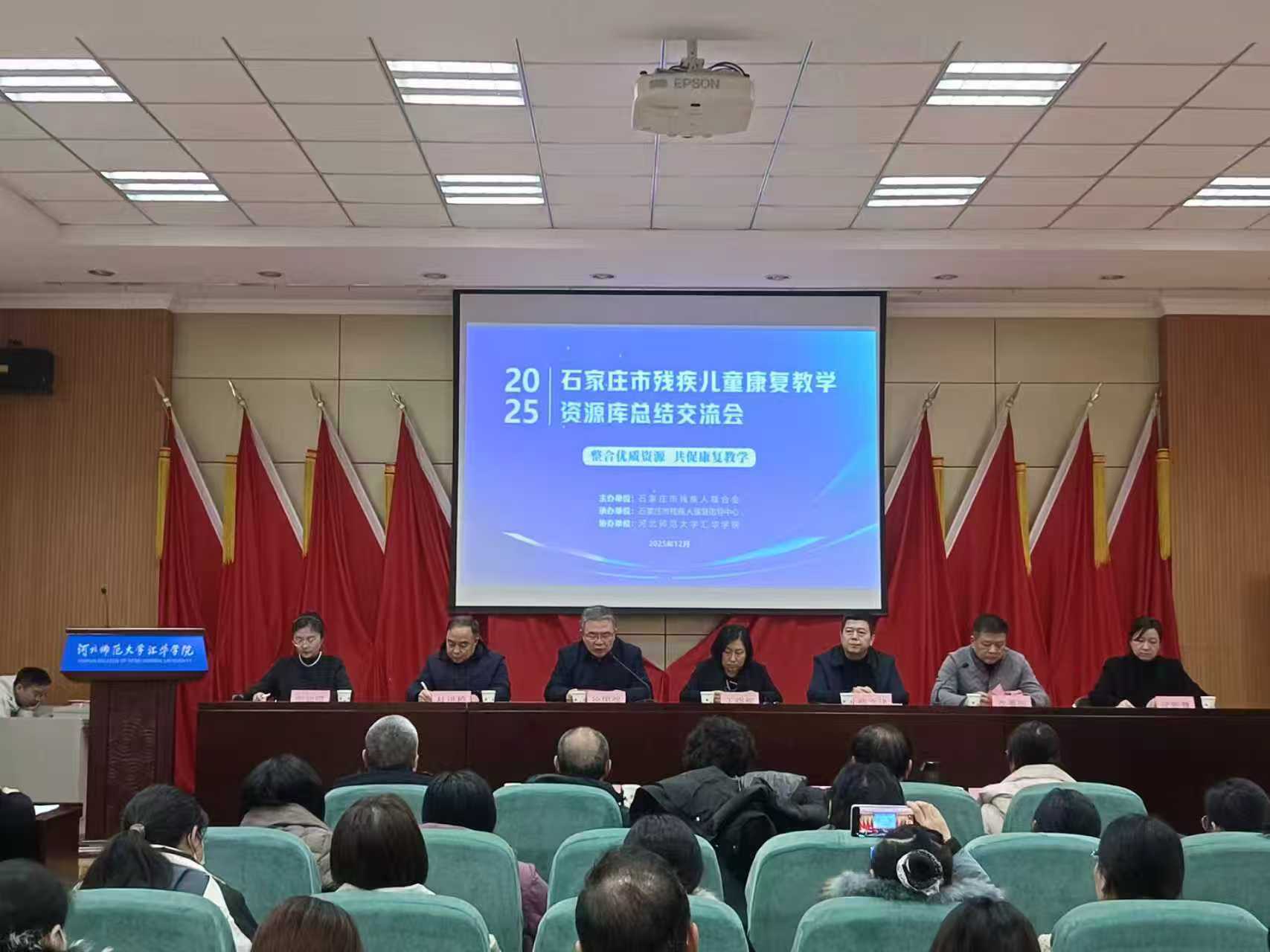 12月16日,由石家庄市残联主办,市残疾人康复指导中心承办,Beat365唯一官方网站协办的石家庄市残疾儿童康复教学资源库总结交流会在Beat365成功举办。省残疾人康复中心、市残联领导,60余家市残联定点儿童康复机构负责人及业务骨干,围绕“整合优质资源 共促康复教学”核心主题深入研讨,共话残疾儿童康复事业高质量发展蓝图。Beat365唯一官方网站院长徐国强出席会议并致辞,教育学部部长武新慧及教育学部师生代表到场参会。本次会议由市残疾人康复指导中心党支部书记郭岩霞主持。
