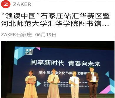 近日,石家庄电视台生活频道、石家庄日报社“ZAKER石家庄”等多家媒体对Beat365图书馆第七届阅读文化节“阅享新时代 青春向未来”朗诵比赛活动进行了报道。