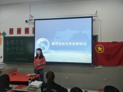 班会之初,同学们分别观看了有“洁洁良”事件的新闻报道视频以及专家学者对此事的探讨视频,使同学们大致了解该事件的来龙去脉,为此,刘雨含、杨佳宝、刘宣三位同学对此上台发表感想。而后,针对本次班会主题向全班同学播放了习近平在北京大学师生座谈会上的讲话视频进行问卷调查,结果显示大部分同学爱国、爱校以及网络文明意识较强烈。紧接着陈杰和姚雪两位同学分别从爱校和爱国两个层面发表演讲,大大加强同学们爱国爱校意识。随后,纪律委员张劲松同学带领全班同学在团旗下进行文明上网庄严宣誓,同学们将誓词中心思想铭记于心。辅导员赵永杰老师带领全班同学在“自强不息,振兴中华”签名墙上签上自己的名字,励志报效国家。最后,辅导员老师对本次班会进行总结,她表示:维护祖国荣誉与尊严是每一位公民义不容辞的责任与义务,在网络上发表正当言论。当代大学生要切实提高辨别是非的能力,树立正确的价值观,培育和践行社会主义核心价值观。为更好提高同学们思想政治意识,同学们又观看了习近平在马克思诞辰200周年大会上的讲话视频,同学们深入反思,升华了本次班会的主题。