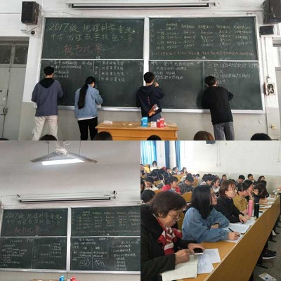 为培养学生从教技能,理学部2017级地理科学专业3月7日下午开展了以“迈向讲台第一步”为主题的中学地理教学技能大赛之板书比赛。此次活动邀请到河北省地理教学研究会理事南月省教授到场,旨在以比赛的形式促进学生板书技能进一步提升,同时提高师范专业素养,巩固专业知识。