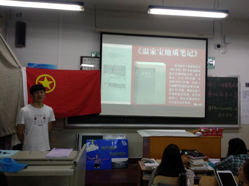 活动伊始,学习委员从写作背景、写作目的和大致内容等方面为同学们介绍了《温家宝地质笔记》一书。书中,温家宝总理从不同侧面,客观、真实地记录了一个年轻地质队员成长的历程,同时反映了改革开放初期国家地质工作的变化和取得的成就,深刻表达出温总理对地质工作的无限怀念之情。随后,同学们观看了相关视频,对《温家宝地质笔记》有了多角度、多层次的理解与认识。对此,同学们展开了激烈的讨论与热切的交流,对地质工作有了更深一步的了解。最后,支部书记为同学们推荐了《习近平的七年知青岁月》《十五岁的长征》《红船》等一系列读物,为本次读书研习交流会画上了圆满的句号。