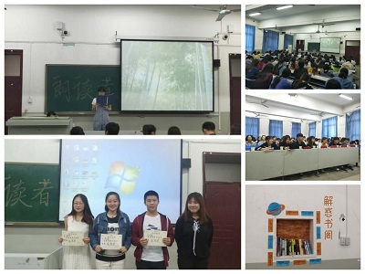 在“世界读书日”当天,团总支于第二教学楼111教室举办朗读者活动,参赛同学以自制PPT和演讲相结合的形式依次上台朗诵,经过层层筛选,2017级地理科学二班王梦瑶同学朗读的《一个人要像一支队伍》荣获此次比赛的一等奖。
