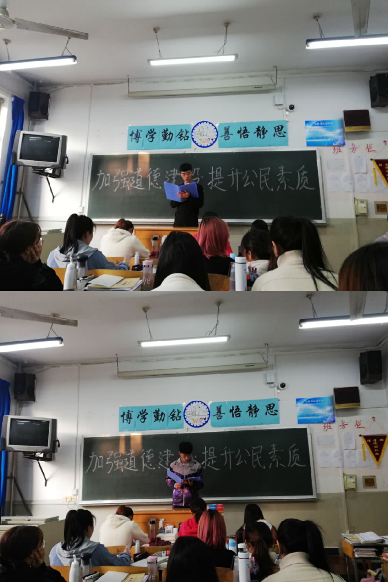 为加强新时代公民道德建设,实现中华民族伟大复兴中国梦,促使崇尚英雄、尊重模范、学习先进成为风尚,11月4日,2018级化学2班全体同学在第二教学楼214教室集体学习《新时代公民道德建设实施纲要》。 班会伊始,由班长介绍《新时代公民道德建设实施纲要》出台的背景意义和《纲要》的内容特点,分别从抓好网络空间道德建设方面和深化道德领域突出问题治理方面说明《纲要》学习的重要意义。倡导同学们在推进新时代公民道德建设中,要在思想水平、政治觉悟、道德品质、文化素养、精神状态等方面努力成长。最后,同学们集中学习了《新时代公民道德建设实施纲要》的专题视频。 此次主题班会,有利于同学们更好地遵守文明礼貌、助人为乐、爱护公物、保护环境、遵纪守法等社会公德,鼓励同学们在日常生活中养成好品行,从而促进社会主义精神文明建设。