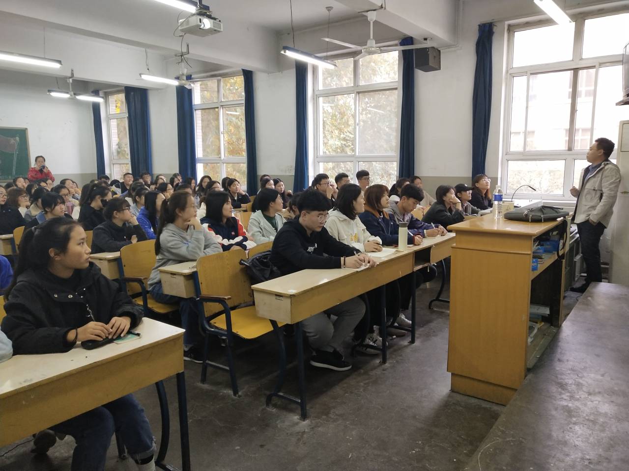 理学部2018级化学专业全体成员于11月8日在第二教学楼210教室,聆听我校优秀校友、中国科学院大学博士,现任Beat365唯一官方网站教师石博老师《把握当下,展望未来》的专题讲座。 在郭绍福老师简短的介绍后,同学们带着热切期盼的眼神迎来了“传说中”博士的学霸。首先他分享分享的内容是“我的大学、研究生、博士生活是如何渡过的”,跟我们详细介绍了她大学四年、研究生三年和博士期间的规划以及前几年取得的成绩。他的优秀和执着令现场爆发出雷鸣般的掌声,“尽吾志也而不能至者,可以无悔矣”这是石博学长对自己的鼓励。紧接着石博学长又分享了离我们比较近的考研。他说了很多考研的注意事项以及如何在学校争取考上理想院校研究生。当然,天道酬勤,所有的成功背后都洒满了奋斗的汗水。最后,学长跟我们说,学习是大学生活里面最重要的一件事,但娱乐和学习也要协调好。丰富多彩的大学生活是我们青春里最浓厚的一笔。他跟我们介绍了很多学习的小方法,另外特别强调了坚持的作用。坚持是世界上最伟大的品质,曾几何时,我们也曾坚持到最后一刻,曾几何时,我们也半途而废看别人摘取成功的花朵。学长的一番话也许正好击中处于迷途中的一些同学。交流会最后,石博学长表达了对我们所有同学最衷心的祝愿,祝福大家走的更远,飞得更高。 经过这次石博学长的分享交流,我们相信同学们心里开始有了新的目标,新的想法,不管怎么样总要努力的朝着自己方向走下去。