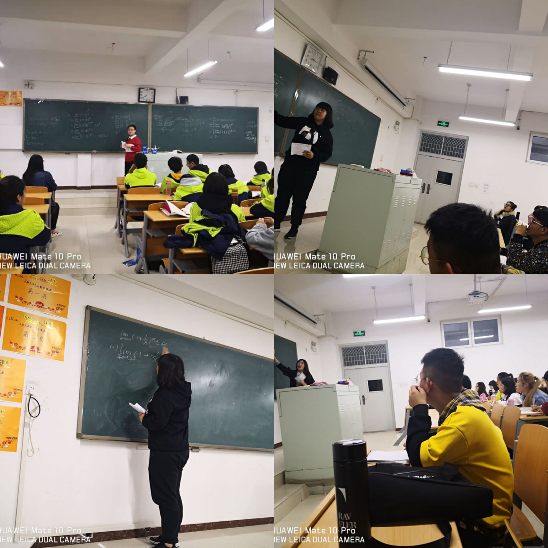 为弘扬“奉献、友爱、互助、进步”的志愿服务精神,积极响应十九大“互帮互助”的口号,12月8日,2018级数学与应用数学1班在六教402和602教室举办了“我和经管有个约”主题志愿服务活动。此次活动获得了理学部徐倩老师和经管学部吴书新老师的支持,受到了同学们的一致好评,达到了预期的效果和目的。 本次活动共分为三个阶段进行。首先,由我班学委张楚与经济管理学部工商管理类一班二班班长进行交流沟通,了解同学们的需求,目的是让本次活动具有针对性讲解和具备更好的学习效果。之后,我班推选成绩优异的同学,就微积分相关知识对19级工商管理类1班和2班的同学进行指导和交流。在课后,同学们对不理解的问题进行提问,充分体现了通过本次活动增加了学习的积极性。此次交流中学弟学妹们提问积极踊跃,学姐、学长更是倾囊相助,在面对面交流中产生了思想的碰撞,相约下次学习交流。 此次交流会活动虽短,却意义深远,不仅让同学们解决了对于微积分的专业学习问题,激发了同学们之间的学习热情,锻炼了我们的教师技能素养,还为两个学部两个班级之间搭建了一个良好的交流平台。