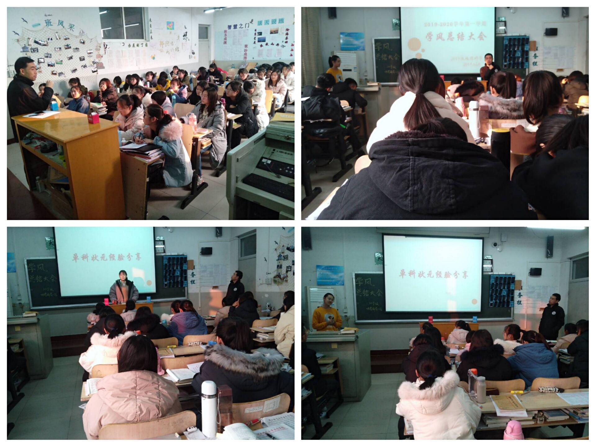 为营造优秀的班级氛围,增强同学们的进取意识,形成良好的向学风气,2019级地理科学1班于12月6日在第二教学楼302教室就本学期学风建设进行总结。此次大会由学习委员魏卓君主持、辅导员安志远老师出席。 善对比之不足,搏当下之大志 活动伊始,魏卓君就此次期中考试各科及总成绩通过图表的形式分别同2019级地理科学2班、2018级地理科学1班进行对比,起到了找差距、时反省、定目标、树信心的重要作用。同时,她也通过各宿舍的成绩排名,向同学们说明了集体力量的强大。她提到:在学习过程中,不仅不能为临时取得的小成绩沾沾自喜,而且也不能为临时的落后失望气馁。通过魏卓君的学情分析,同学们找到了他们在学习过程中的优势与弱势,为班级学风建设打下了基础。 树榜样之模范,聆经验之畅谈 魏卓君向同学们展示了期中单科成绩前十名并进行表彰,并分享《自然地理学》学习经验。随后又邀请《人文地理学》第一名张雪盈、《高等数学》第一名仝珊珊进行相应科目学习经验分享,帮助同学们更好地投入到期末考试复习中,他们在这三个月以来的学习历程生动形象得诠释了“一分耕耘一分收获”的真谛,同时他们也带动了全班的学习积极性,对日后班级学风氛围的营造产生深远影响。 悟今朝之时代,做拼搏之少年 大会最后,安志远老师就学风建设做阶段性目标规划,学情分析、班级活动、第二课堂都与学风建设有密不可分的关系。他指出:学风建设是一个长远的过程,杜绝“学风建设是班委的事”、“学风建设和我无关”的错误思想,营造一个学风浓厚的班级体必须克服错误思想,打造优秀班集体,创优良班级学风氛围,是每一名同学都要肩负的责任。最后安老师对本次学风建设总结大会的各个环节进行串联,将大会的意义进一步升华,本次大会圆满落幕。 本次学风建设总结大会的顺利开展,旨在集全班之力筑学风之塔。通过此次大会,不仅让同学们了解的自己的优势和不足,更提高了班级的凝聚力和向心力。最重要的是,本次学风建设总结大会为学部营造了良好的学习氛围,对优良的学风建设产生深远影响。
