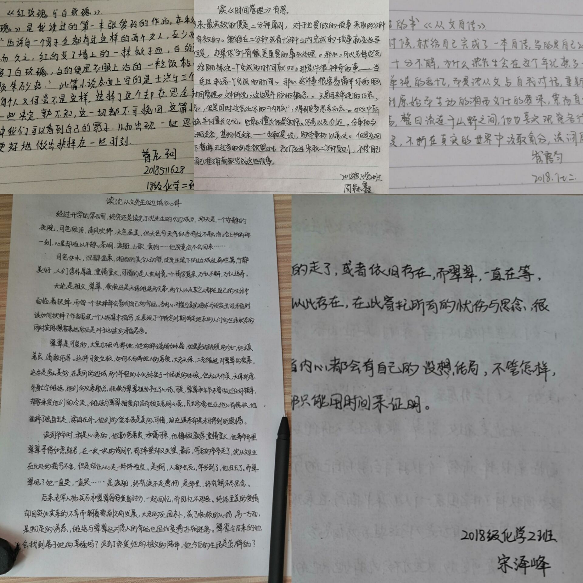 为了迎接“世界读书日”的到来,鼓励同学们以书为友,以经典为友,激发同学们的读书兴趣,同时养成爱读书、读好书的阅读习惯,以营造出良好的读书氛围,2018级化学2班全体同学于2020年3月12日至2020年4月12日开展“读书交流会”线上读书月活动。 活动主要是以谈读书心得和推荐好书两种形式构成。活动形式一——谈读书心得。在读书月期间,以宿舍为小组,每个成员都在看完自己喜欢的书之后谈读书观后感,如:读沈从文的《边城》有感、读郭沫若的《时间管理》有感等等,并将读书观后感以纸质版形式分享出来。活动形式二——好书推荐。经典我们不能忘记,应让书香永远伴随我们,让阅读成为充实生活的一部分。读书月期间,通过激发同学们的阅读兴趣,调动起同学们的积极性,同学们主动把自己看过的好书或听过的好书进行推荐,如:《红玫瑰与白玫瑰》、《从文自传》等,并通过纸质版形式简单介绍说明该书的亮点以激发鼓励其他同学养成爱读书、读好书的阅读习惯。 此次活动的开展,更好地营造了积极向上、清新高雅的班级文化氛围和浓郁的书香氛围,丰富了同学们在家学习的文化生活,提升了同学们的文化道德素养和阅读品味。活动后同学们纷纷表示疫情期间的居家学习,我们更要努力充实自己,这是我们阅读书籍增长知识的好时机,让知识充盈我们的大脑,让书籍开阔我们的视野,做到防疫学业两手抓!