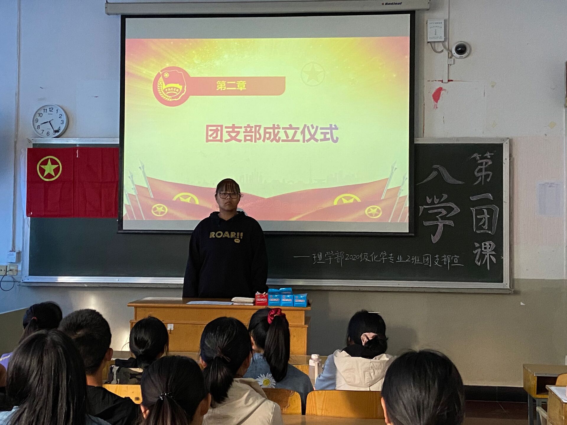 为推进学校共青团工作的深入开展,加强团的组织建设,10月4日,理学部2020级化学2班在第二教学楼214教室成功举办了班级团日活动。 该团日活动在庄严的国歌声中拉开帷幕。首先是理学部2020级化学2班团支部正式成立,为我校注入了一批有理想、有本领、有担当的优秀共青团员。随后,团支书张思琦带领同学们重温入团誓词,重温当年入团时的决心和信念,结合今天的认识和行动,始终铭记入团的誓言。最后,张思琦为同学们详细介绍了共青团主要性质、历史使命与任务,要求大家要时刻牢记使命,做新时代社会主义事业的接班人。同学们认真聆听,积极配合,至此该活动圆满结束。