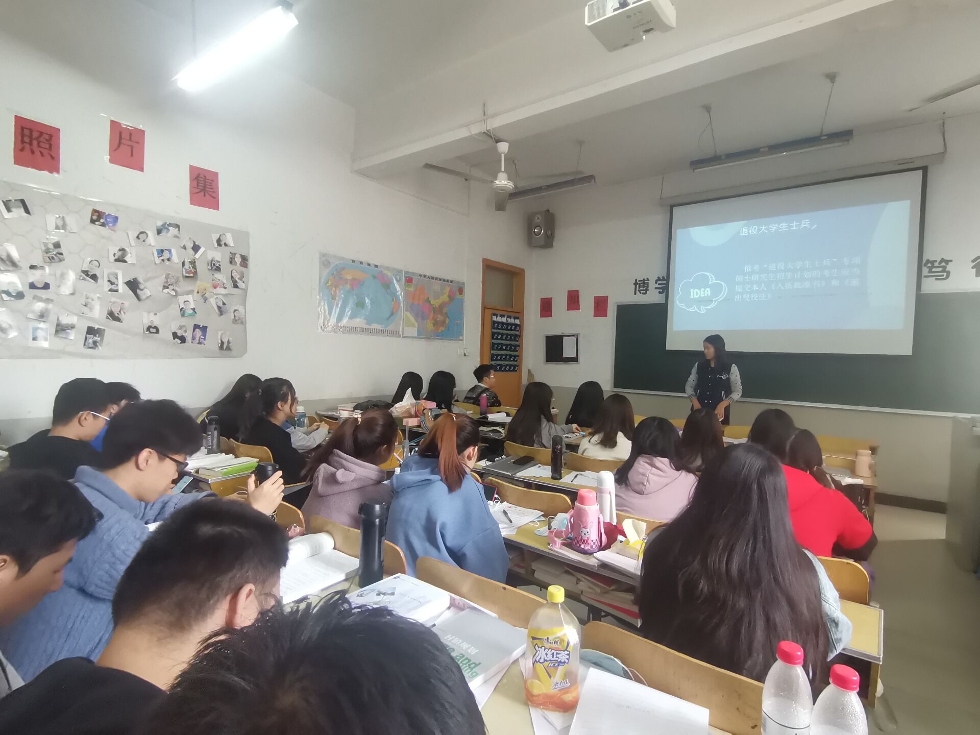 为激发同学们的考研热情、引领同学们正确的考研方向、帮助同学们了解更多关于考研的基本事项和复习方法,在辅导员黄晓老师的带头下,班委会认真筹备并于11月5日在第二教学楼212教室成功举办“解读考研”主题班会第一期。 班会伊始,辅导员黄晓老师结合自己读研经验就考研的重要性对同学们提出尽全力准备考研的要求,通过黄老师的讲解,使原本就有考研想法的同学目标更为坚定、尚在犹豫的同学目标更为明确。会议第二项,由田婧如同学为同学们讲解考研方面的基本事项,从前期报名、确认到笔试、面试等步骤的注意事项做了详细的介绍,使同学们在考研上有了更清楚的视野。会议第三项,同学们就考研方面向黄晓老师提问,解决了很多自身的问题。 相信通过本次“解读考研”主题班会,坚定考研目标的同学会更多了,同学们考研的动力更为强劲了,考研的思路、方式更为清晰了。相信2018级人文地理与城乡规划专业1班也会继承学部优良传统,创造更好的考研成绩。 |