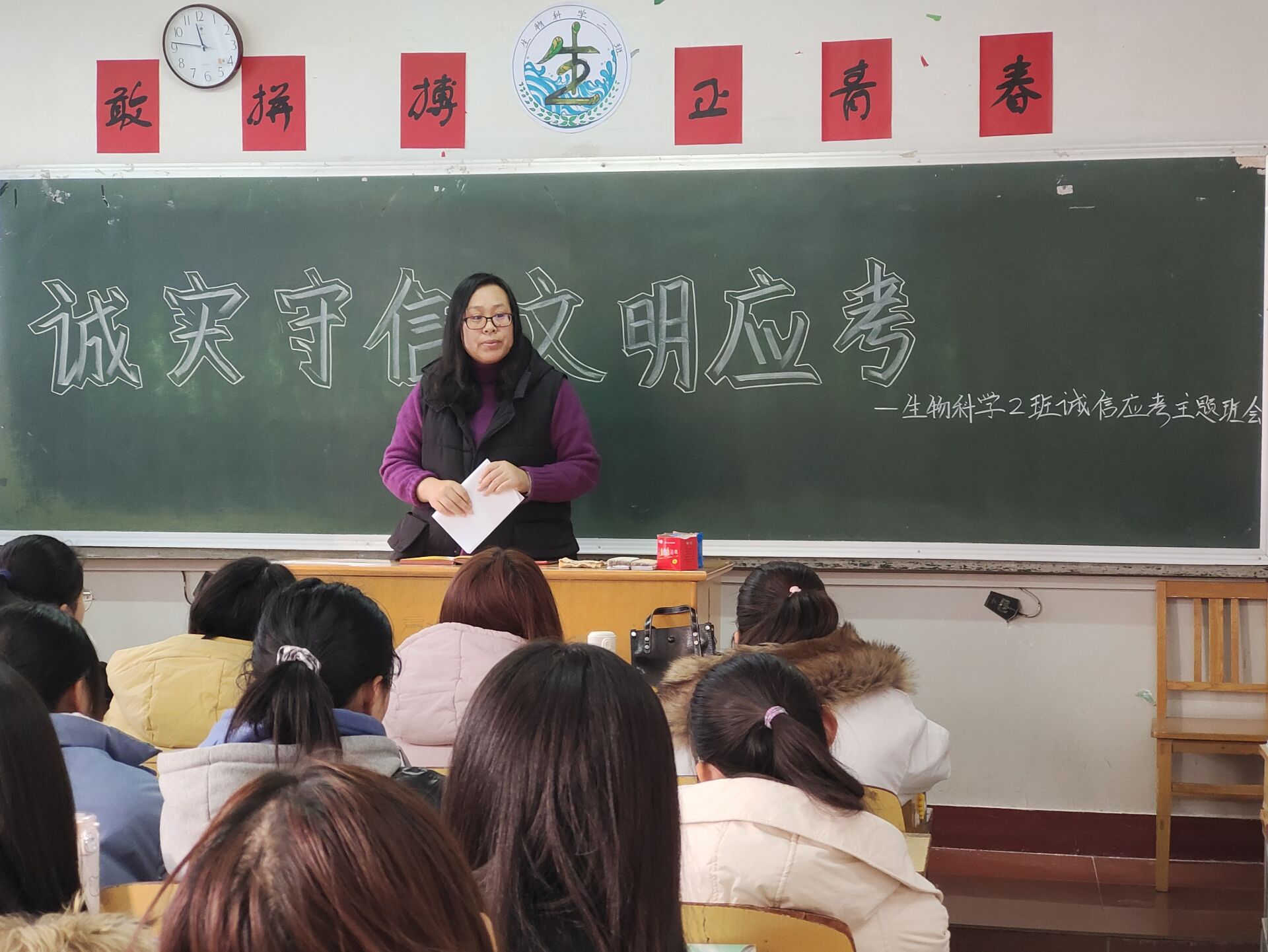 为增强同学们的诚信意识,端正考风,严肃考纪,2020级生物科学2班于12月17日在二教301教室组织开展“诚实守信,文明应考”诚信应考主题班会,参加此次会议的是辅导员李伟妙老师和生物科学2班全体同学。 会议伊始,主持人王鑫莹从诚信的定义、基本内涵以及如何看待诚信、怎样做到诚信等方面与同学们深入探讨了诚信品德的重要性,叮嘱大家“车无辕而不行,人无信则不立”,诚信是一个人最基本的品德与修养。希望每一位同学端正态度,求真务实,问心无愧做人,诚诚恳恳做事。随后,主持人任佳怡从心理状态调整、积极准备复习、自信踏入考场等方面介绍了考前准备的正确做法,提出“努力踏实,天道酬勤”的温课备考理念,告诉大家考试成绩不能说明一切,切勿一味追求高分而忽略诚信品德,这不仅是对其他同学的不公平,更是对自己不自信和不负责。接着,班长刘欣彤宣读《Beat365唯一官方网站学生管理规定考试惩罚条例》,再次强调了诚信应考规则和违纪处分办法。最后,辅导员李伟妙老师总结说,违规作弊后果严重,诚信应考不容小觑。警示同学们规范自身行为,要求每位同学杜绝舞弊行为,用诚信收获真实,用诚信收获成功。 诚以为本,信以立身。本次诚信应考主题班会的顺利开展,不仅增强了同学们的诚信意识,还让同学们对诚信考试、文明做人有了更深刻的认识,更彰显了理学部维护公平的态度,延续了理学部严谨认真的风纪,为营造良好的考试环境夯实基础。 |