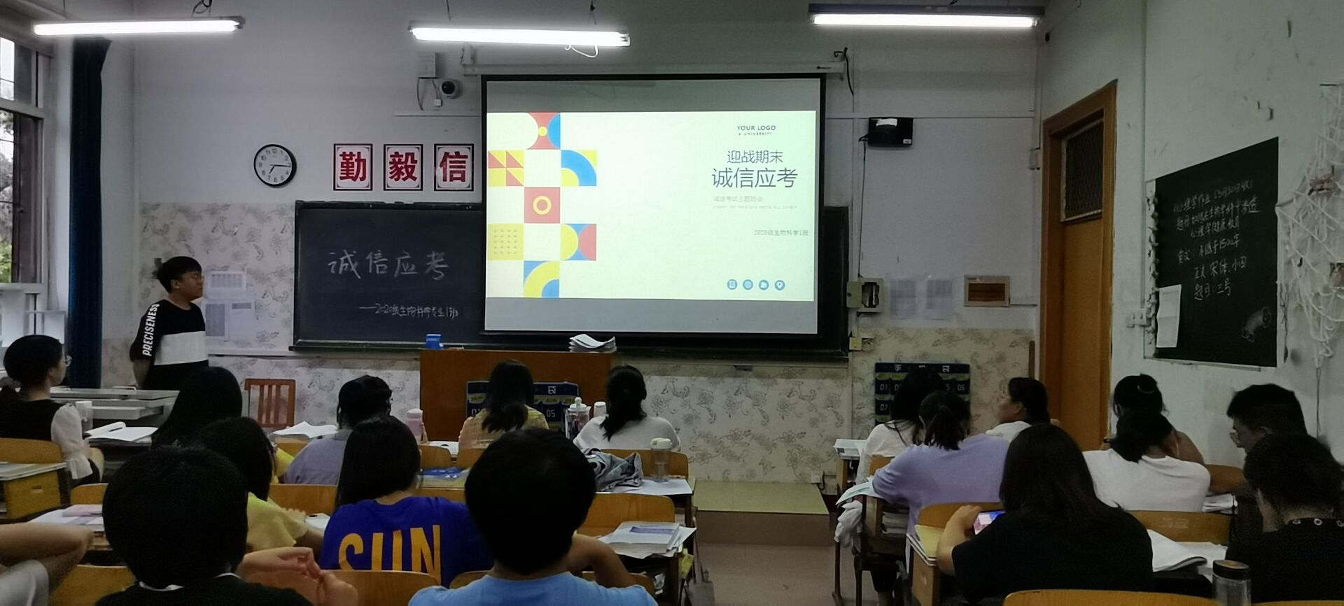 在期末考试来临之际,为增强诚信道德教育,提高班级同学的学习积极性,2020级生物科学专业1班于2021年6月3日在第二教学楼202教室开展“迎战期末,诚信应考”主题班会。旨在让同学们全面贯彻、认真学习考场纪律要求,做好考试准备。 首先,班长潘辰宇强调了考试中的诚信问题,宣读了学生考核违纪作弊的处理方法。他分析了作弊行为的原因和危害,让同学们明白考试只是检测所学知识熟练程度的手段,是平时努力程度的集中反映,优异的成绩要靠自己的真实努力来争取,因此大家一定要遵守学校的校规校纪。随后,几位学习成绩优异的同学讲解了自己的复习方法和平时的学习经验。帮助同学们掌握考试重点难点,克服复习难关。最后,潘辰宇传达有关考试的规章制度,详细阐述考试过程中诚实守信、沉着冷静的重要性,希望同学们能以良好的心态迎接期末考试的到来。 此次班会不仅让同学们充分意识到了诚信的重要性,还提高了班级学习的积极性,营造了良好的考试氛围。相信同学们会在接下来的复习周中端正态度,积极备战,最终取得优异的成绩!