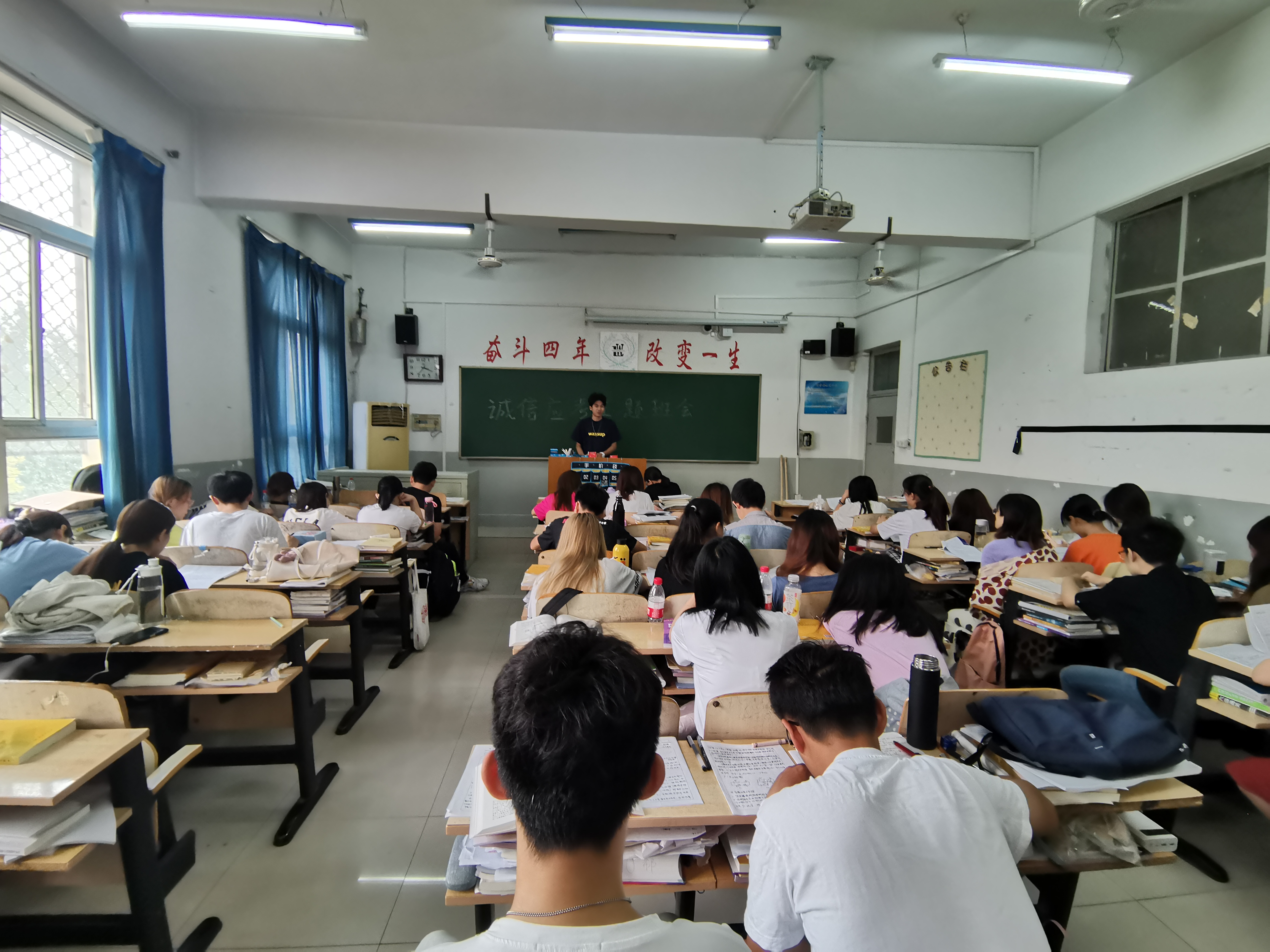 为进一步加强同学们诚信考试的意识,激发同学们的学习热情,端正考风考纪,坚决抵制考试的不良风气,杜绝考试作弊行为,6月3日,2019级物理学一班成功举办诚信应考主题班会。 本次主题班会,旨在让同学们进一步明确严肃考风考纪的重要性及学校对于违规违纪行为持零容忍态度。会上,针对不同专业的课程特点,阐释了课程期末考试的目的意义所在,强调要求重在日常学习,注重学习方法及劳逸结合,督促同学们端正应试态度,杜绝不良考风考纪,还建立“学习帮扶小组”互相分享复习策略,查缺补漏、取长补短、答疑解惑等,同时,集中在固定的场所进行学习,鼓励同学们规律作息、高效复习。这些都为同学们积极备考、端正学风考风、诚信考试营造了良好的氛围。 树道德新风,立诚信之本。我们应当以诚信的态度面对考试,通过自己的努力付出来获得相应的回报。在期末考试中,我们要面临的既是一次学习成果的检阅,也是一场道德的考验。我们要以诚信的态度对待每一场考试,不要让宝贵的诚信遗失在考场上。