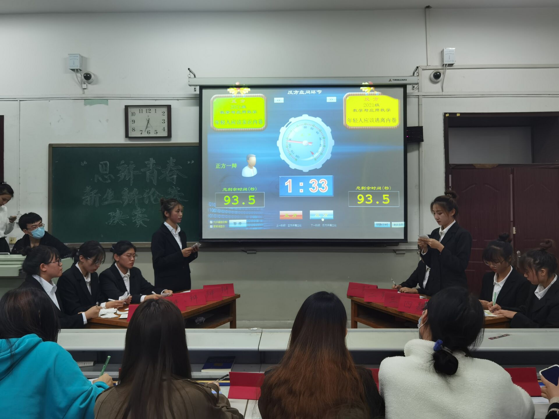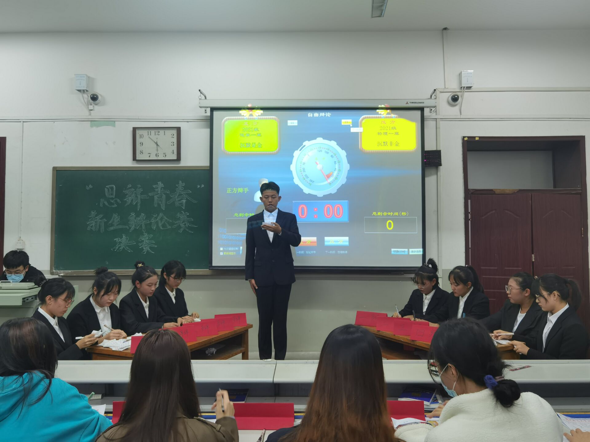 为给理学部新生提供展现自我非凡魅力的平台,同时也为了进一步提高大学生的思维能力,营造良好的学习氛围。2021年10月,理学部学生会学拓部开展了理学部新生辩论赛活动。 本次活动共8支班级代表队参赛,辩论赛共分为开篇立论、对辩、驳论、自由辩论和总结陈词五个环节。经过初赛复赛环节激烈的角逐,最终有四个班级晋级决赛。在本次决赛过程中,各方选手你来我往侃侃而谈,旁征博引,表现沉稳淡定,言辞犀利生动,思维敏捷。场下观众激情澎湃掌声连连。现场气氛迅速升温,精彩不停。自由辩论环节更是将比赛推向了高潮。双方辩手优秀的表现获得了评委们的一致认可。赛后,各位评委对辩手们的表现进行了全方位的点评,正确指出了辩手们的问题与不足,并给出了良好的建议。经过两场比赛激烈的角逐,理学部“思辨青春”辩论赛的第一名是2021级数学与应用数学专业2班,第二名是2021级物理学专业1班,第三名是2021级化学专业1班,获得优秀奖的是2021级数学与应用数学专业1班。第一场反方辩手张怡梦和第二场反方辩手孙佳琦获得最佳辩手奖。 通过本次活动,锻炼了学生的语言组织能力、应变能力、合作能力和逻辑思考能力,提高了思维反应速度和沟通技巧。通过辩论赛这一良好的平台,展示了理学部新生们辩论场上的非凡风采,营造了良好的学习氛围,巩固了同学们之间的友谊,为新生进一步适应大学生活、充实丰富大学时光奠定了基础。