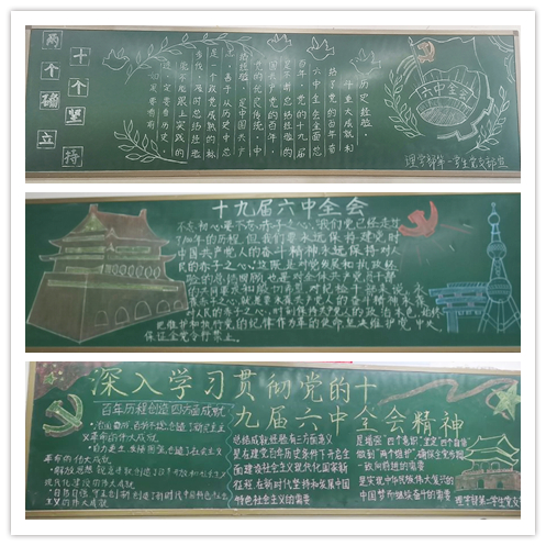 11月8日至11日,中国共产党第十九届中央委员会第六次全体会议在北京胜利举行。全会听取和讨论了习近平总书记受中央政治局委托作的工作报告,审议通过了《中共中央关于党的百年奋斗重大成就和历史经验的决议》和《关于召开党的第二十次全国代表大会的决议》。这次全会是一个历史性和全局性的重大会议,也是一个里程碑和开创性的重大会议。 11月18日下午,理学部党总支组织专题学习会议,学习传达党的十九届六中全会精神。党总支书记王薇带领全体教工党员全文学习《中国共产党第十九届中央委员会第六次全体会议公报》。她指出,党的十九届六中全会对党的百年奋斗历程做了全面总结,主题鲜明、重点突出,体现了马克思主义的唯物史观和辩证方法。全会通过的《中共中央关于党的百年奋斗重大成就和历史经验的决议》是一篇光辉的马克思主义纲领性文献。她要求,全体教工党员要深刻领会十九届六中全会精神,准确把握全会精神实质和丰富内涵,不断强化初心和使命,增强“四个意识”,坚定“四个自信”,做到“两个维护”,结合党史学习教育,紧密团结带领师生,落实立德树人根本任务,不断提升工作质量与工作水平,为学院高质量发展贡献力量。各支部要把学习宣传贯彻十九届六中全会精神作为当前和今后一个时期的重要政治任务,通过专题党课、交流讨论等多种形式深入学习,提高认识,精心部署,确保整个学习教育取得实实在在的成效。 11月18日,在理学部教工党支部十九届六中全会精神专题讨论会上,党支部书记赵彦表示,《决议》通篇融汇了百年来中国共产党践行为中国人民谋幸福、为中华民族谋复兴的初心使命所进行的奋斗、牺牲和创造,深刻揭示了“过去我们为什么能够成功、未来我们怎样才能继续成功”。组织委员杜霞表示,作为基层党务工作者和一名高校教师,肩负着立德树人、教书育人的的历史使命,我们要进一步磨炼对党忠诚的政治品格,增强实干担当的本领,坚持将思政元素融入课程,用党的百年奋斗重大成就和历史经验教育广大青年学生,做到立德树人、为党育人、为国育才。 11月25日,理学部第一学生党支部为庆祝中国共产党第十九届六中全会的成功召开,组织党员、入党积极分子以弘扬十九届六中全会精神为主题绘制了黑板报,用实际行动落实作为新时代青年,要有“敢教日月换新天”的决心,以“肩扛千金,背负万石”之气概,用干一件成一件的执着韧劲,不断发扬实干精神、增强斗争本领,书好干事创业新篇章,真正担负起新时代党给予的光荣使命。 12月2日,理学部第二学生党支部召开党的十九届六中全会学习心得交流会。全体党员围绕近期的学习内容,撰写个人总结与学习体会,依次发言,交流学习心得。大家在交流中普遍认为,纵观党的百年发展历程,既是波澜壮阔的,又是复杂曲折的,中国共产党有着坚定的信仰,并善于学习、善于创新、善于总结,敢于斗争、敢于自我革命,从而成为我们中华民族坚强的领导核心。学习贯彻党的十九届六中全会精神是当前和今后一个时期的重大政治任务,要找准切入点、着力点,让党的十九届六中全会精神洋洋盈耳、入脑入心,推动学习贯彻往深里走、往实里走,统一思想和行动。全体党员同志一致表示,要认真学习贯彻党的十九届六中全会精神,以史为鉴、开创未来,埋头苦干、勇毅前行。 “勿忘昨天的苦难辉煌,无愧今天的使命担当,不负明天的伟大梦想”。理学部师生备受鼓舞、倍感振奋,纷纷表示要认真学习宣传贯彻党的十九届六中全会精神,在以习近平同志为核心的党中央坚强领导下,以史为鉴、开创未来,为实现第二个百年奋斗目标、实现中华民族伟大复兴的中国梦不懈奋斗。