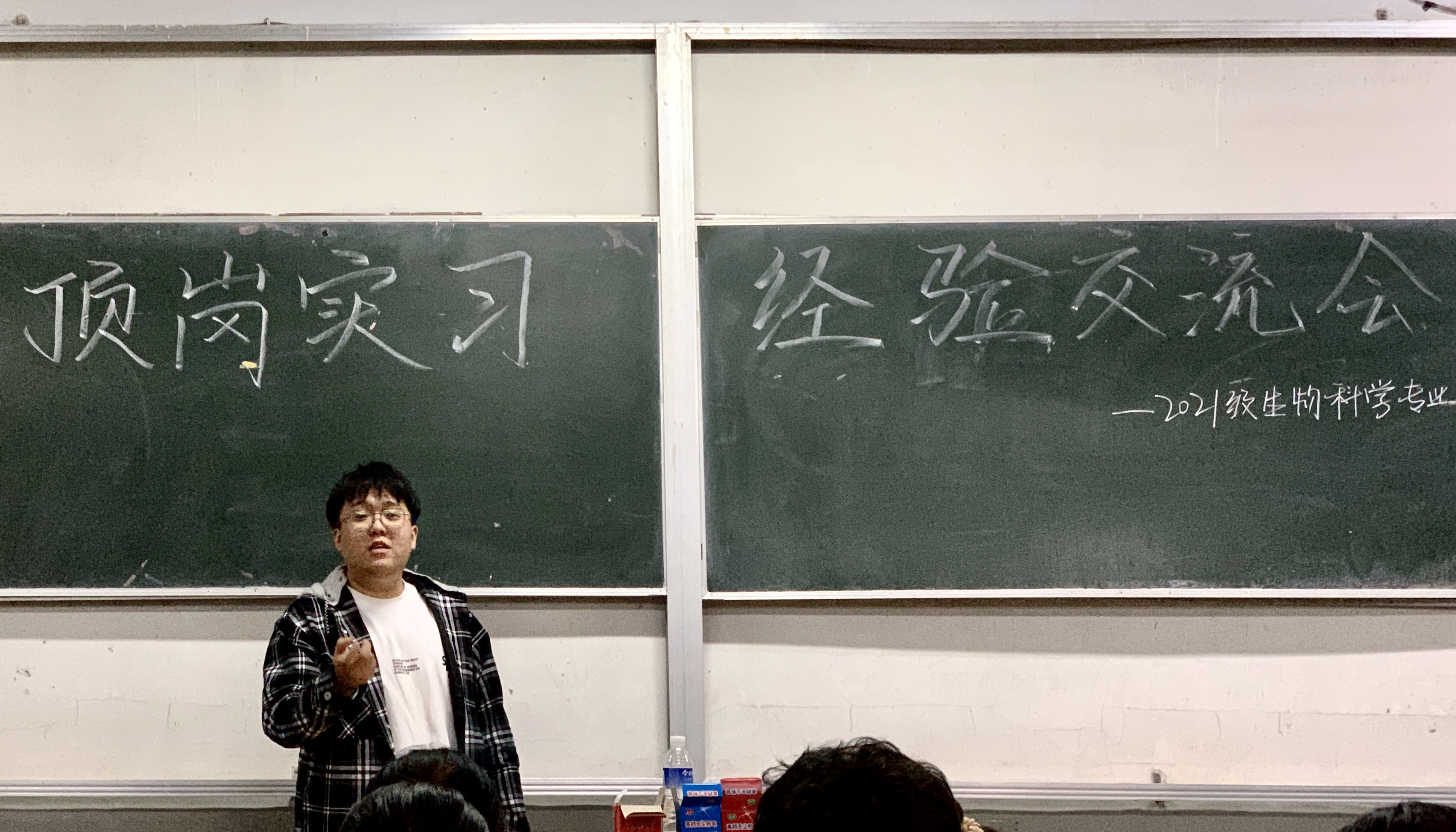 为提高师范生的教学技能、加强从教本领、顺利完成即将来临的顶岗支教任务、打造一支良好的师范团队,2021级生物科学专业在辅导员许志强老师的指导下,诚邀潘辰宇学长、李欢学姐、高佳倩学姐、刘欣彤学姐于3月22日在第二教学楼104教室开展“传经解惑”顶岗实习交流会。 首先,李欢学姐就地区分配、驻县老师的管理等方面展开讲解。实习教师由驻县老师管理,再分为大队长、中队长、小队长等不同等级的职务,根据不同情况还会有团支部书记和宣传委员辅助老师工作,举办团日活动、汇报工作、进行实习期间宣传工作等。另外,学姐特别嘱咐一定珍惜“顶岗实习”的机会,做好自我定位。 其次,高佳欣学姐着重分享了教学方面的经验,对整个实习期间需要做的教学视频、实习日志、实习手册等做了详细介绍。学姐提到,实习期间一定多听老教师、指导教师的课,不断反思修改自己的教学设计。要多邀请指导教师来听自己的课,请指导教师指正问题,让自己快速成长。同时,学姐鼓励同学们积极参加相关平台组织的教师竞赛,丰富实习生活,锻炼教师技能。 接着,刘欣彤学姐结合自身经历分享了与学生相处的实例和处理办法。和学生初次见面,学姐建议同学们树好威信,立好规矩,有利于班级管理。和学生们相处要循序渐进,上课多提问,下课多交流,慢慢熟悉学生的性格,把握学生特点,因材施教是重中之重。学姐推荐鼓励式教育,善于发现学生的闪光点,对学生的进步和优点及时鼓励,对学生的不足和缺点及时指正引导。 最后,潘辰宇学长在生活方面分享了自己的经验。即开学前,一定先和实习学校的老师进行沟通,问好学校位置,住宿问题,吃饭问题,快递问题,所教年级科目等等,做好万全准备。学长提醒同学们对老教师与指导老师一定要谦虚尊重,多学习多请教;做到眼里有活,把自己的工位收拾干净整齐,在办公室做一些力所能及的服务工作。